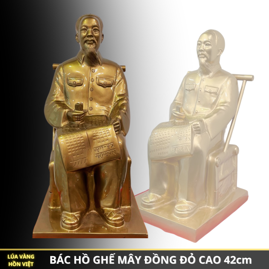 BÁC HỒ GHẾ MÂY ĐỒNG ĐỎ LÀM MÀU CAO 42cm