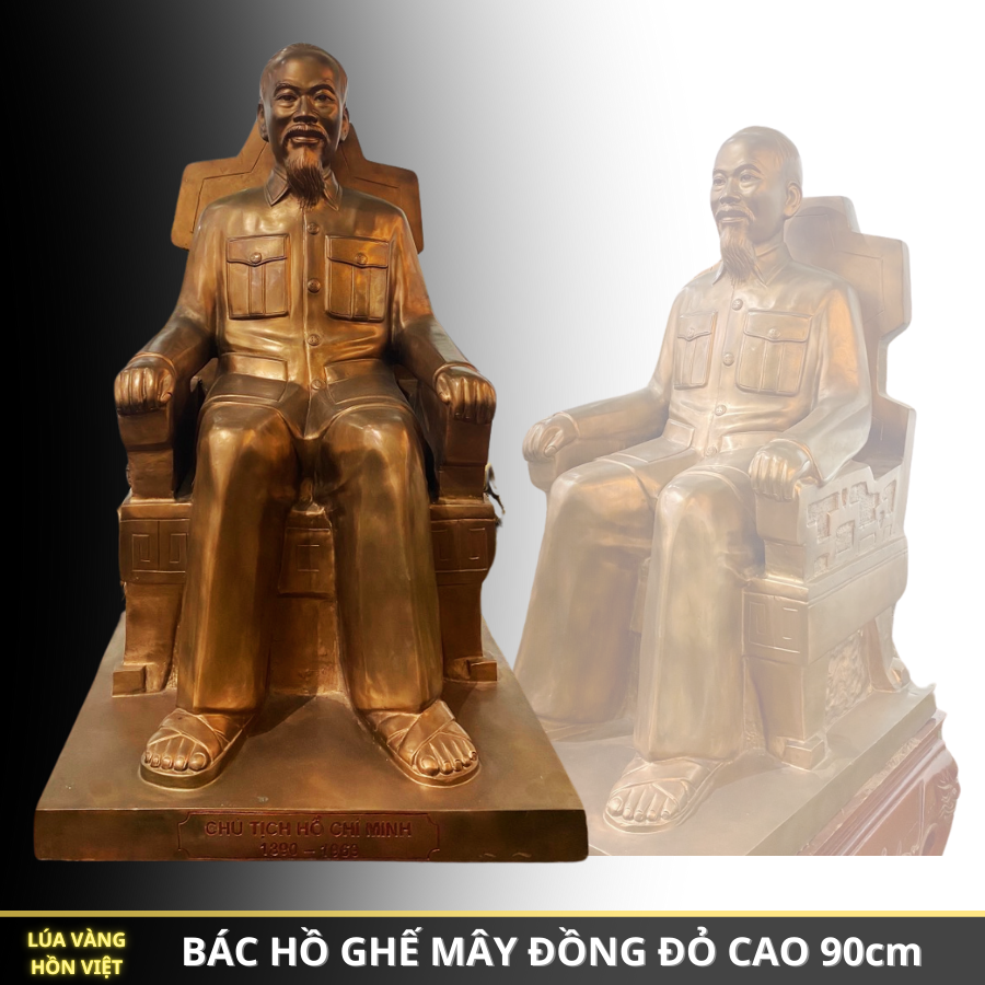 BÁC HỒ GHẾ MÂY ĐÚC ĐỒNG ĐỎ CAO 90cm
