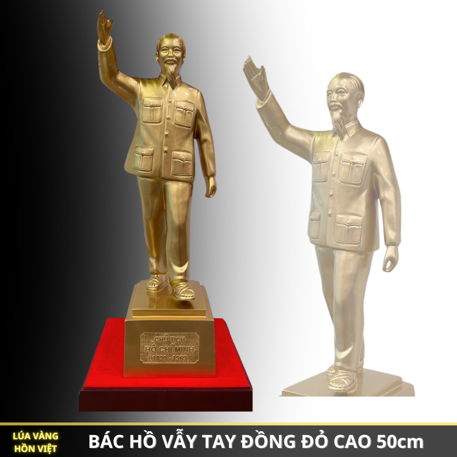 BÁC HỒ VẪY TAY ĐỒNG ĐỎ CAO 50cm
