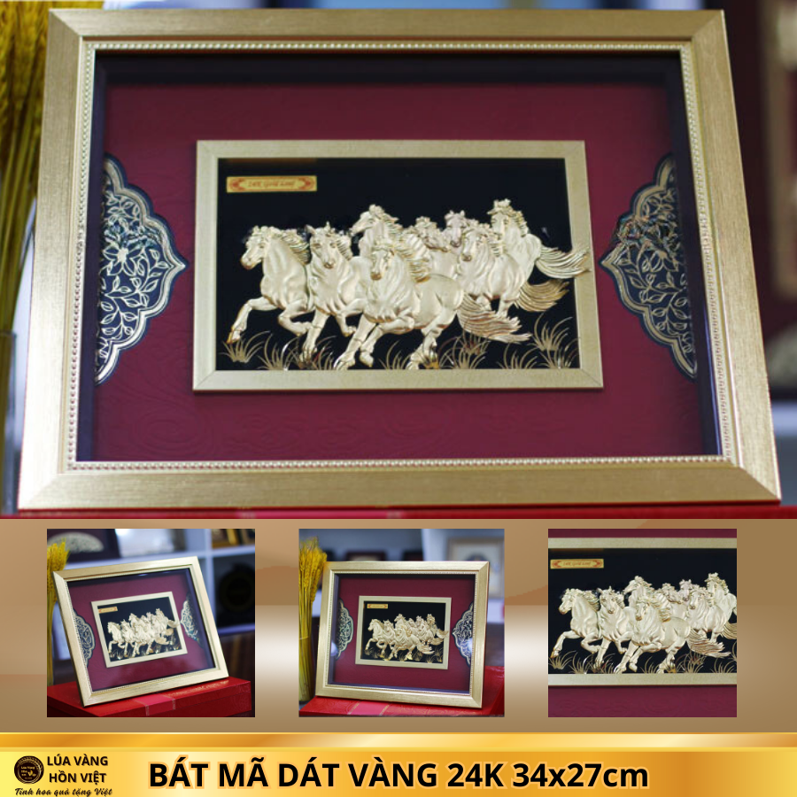 Hãy sở hữu Tranh Bát Mã Dát Vàng 24K 34x27cm để mang lại sự thịnh vượng, thành công và may mắn cho không gian sống của bạn!