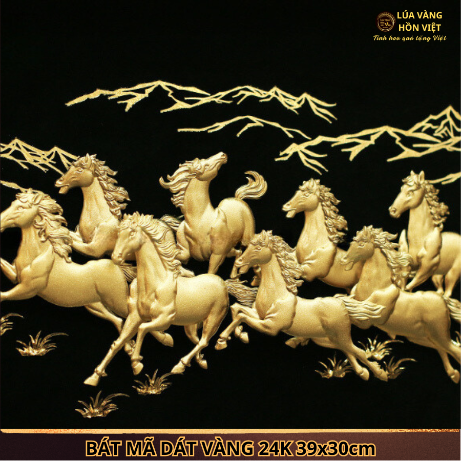 Bức tranh Bát Mã Dát Vàng 24K là tác phẩm nghệ thuật sang trọng, mang giá trị phong thủy sâu sắc. Với hình ảnh tám chú ngựa phi nước đại, tranh biểu trưng cho ý chí, sự quyết tâm và lời chúc may mắn, thành công trên mọi hành trình.