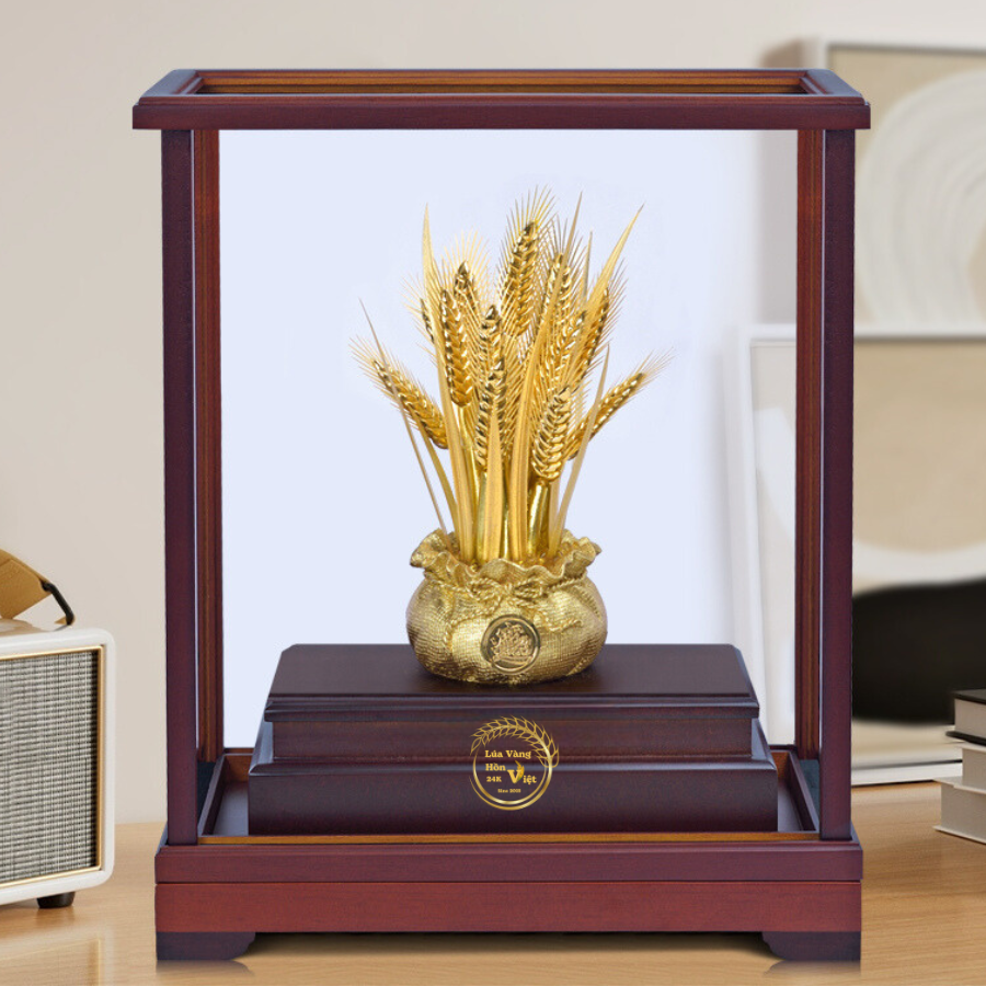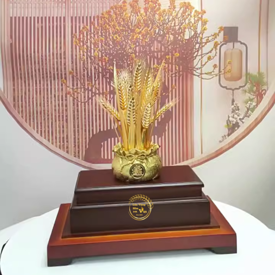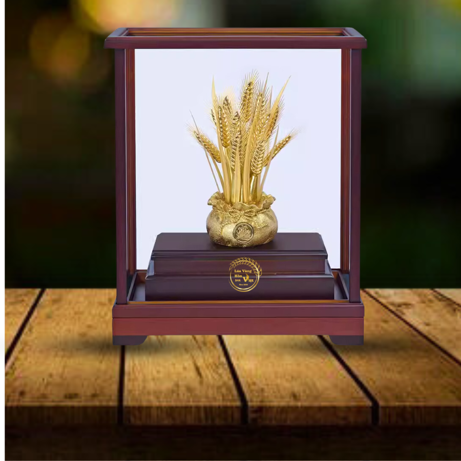 Bó Lúa Đồng Mạ Vàng 24K là một tác phẩm thủ công mỹ nghệ cao cấp, kết tinh từ sự khéo léo của nghệ nhân và chất liệu quý giá. Sản phẩm này không chỉ mang giá trị thẩm mỹ cao mà còn mang ý nghĩa phong thủy sâu sắc, là biểu tượng của sự thịnh vượng và sung túc.