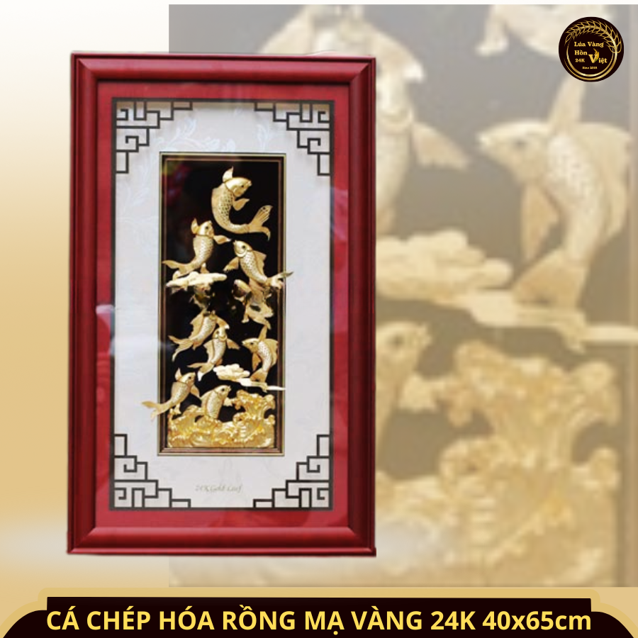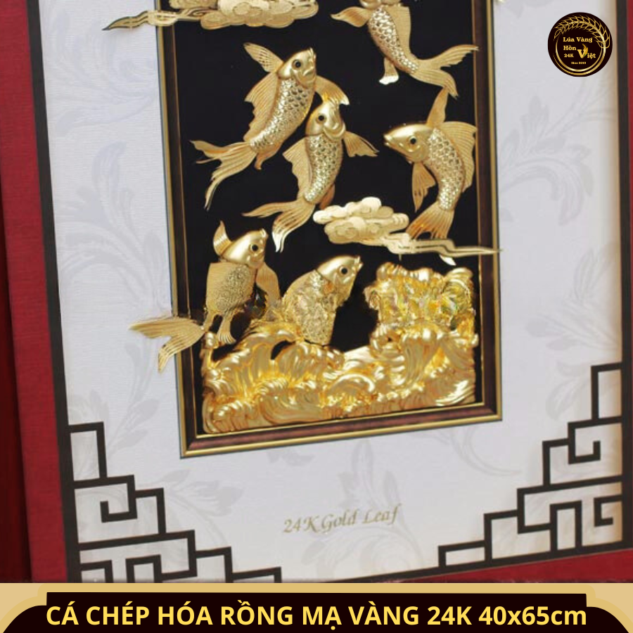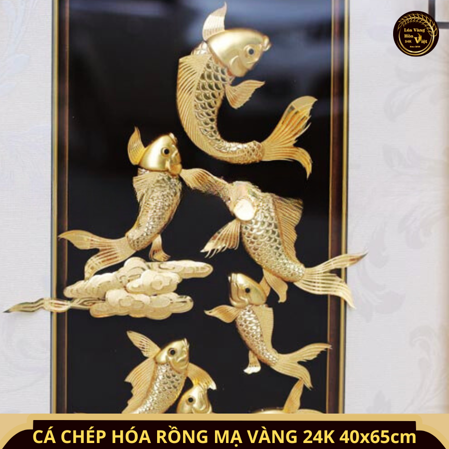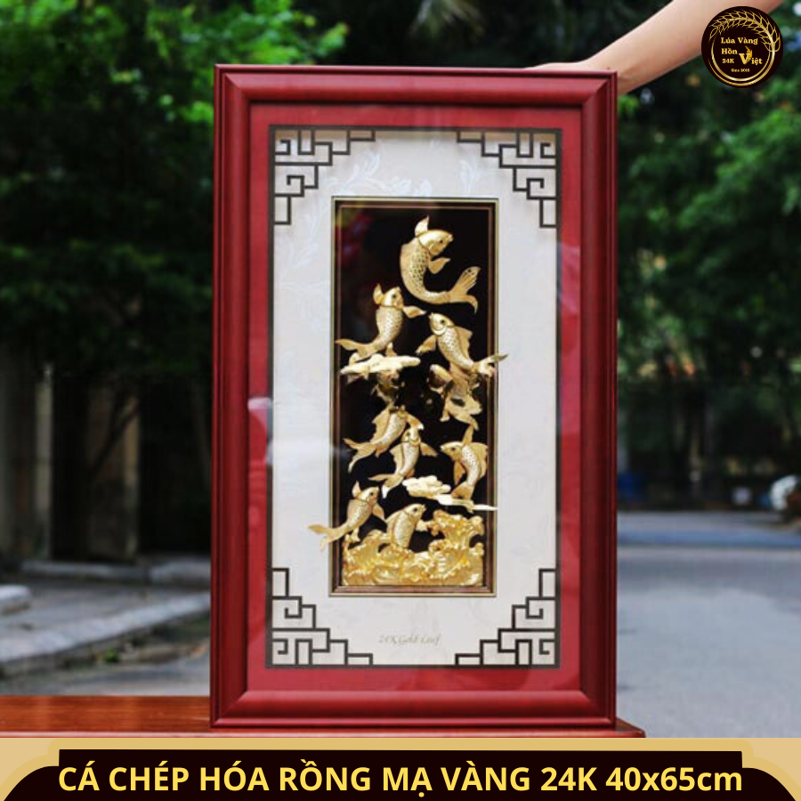 CÁ CHÉP HÓA RỒNG DÁT VÀNG 24K 40x65cm
