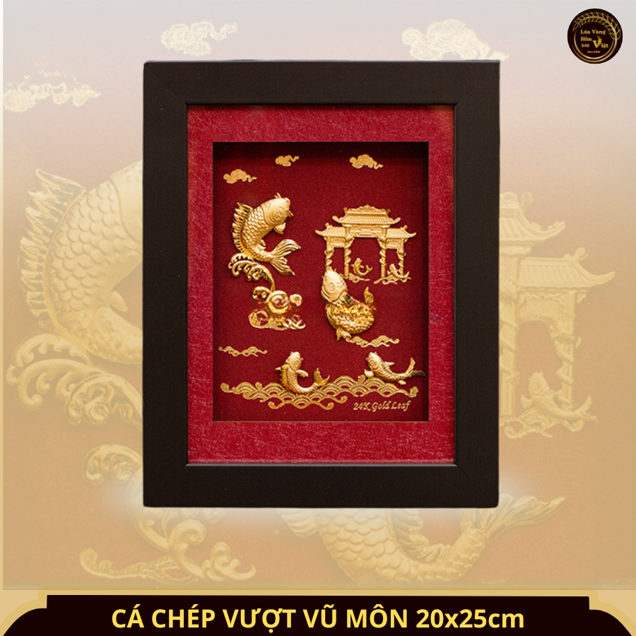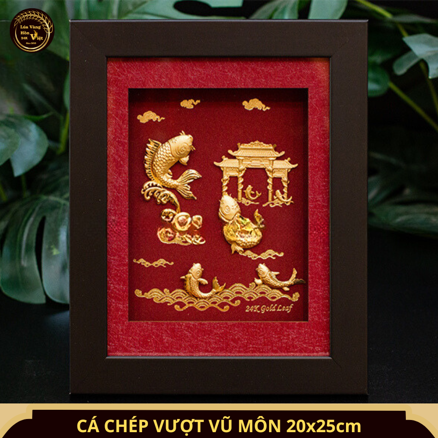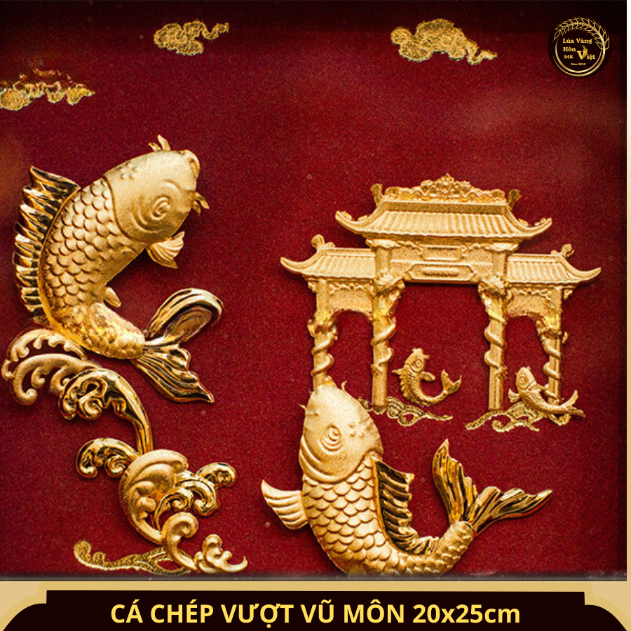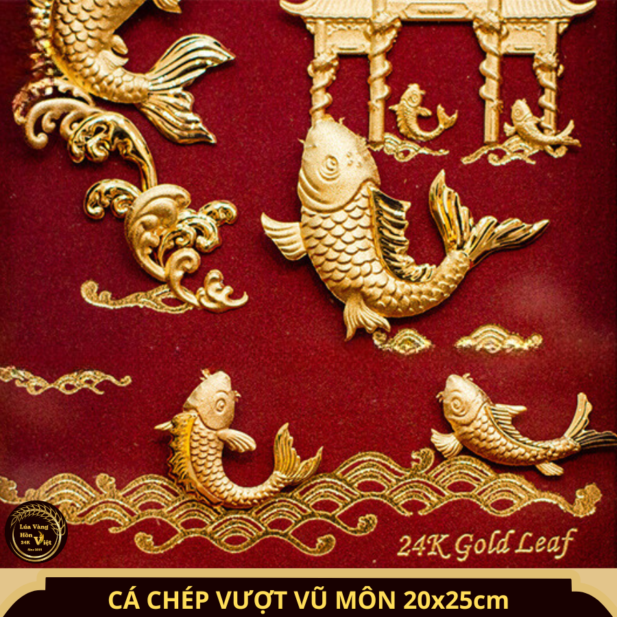 Tranh Cá Chép Vượt Vũ Môn 20x25cm là tác phẩm nghệ thuật phong thủy đầy ý nghĩa, thể hiện sự kiên trì và nghị lực vượt qua khó khăn để đạt được thành công. Với hình ảnh cá chép vươn mình vượt qua vũ môn, bức tranh không chỉ mang giá trị thẩm mỹ mà còn truyền tải thông điệp về sự nỗ lực và thịnh vượng. Được chế tác tinh xảo và dát vàng 24K, bức tranh sẽ là món quà tuyệt vời cho mọi gia đình, đặc biệt trong các dịp Tết hoặc quà tặng cho đối tác, khách hàng.