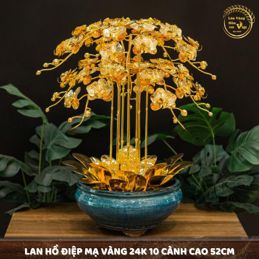 CHẬU LAN ĐỒNG MẠ VÀNG 24K 10 CÀNH C52