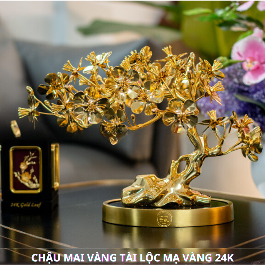 CHẬU MAI VÀNG TÀI LỘC MẠ VÀNG 24K