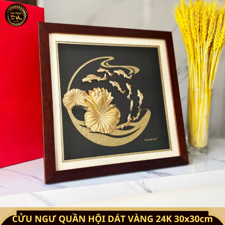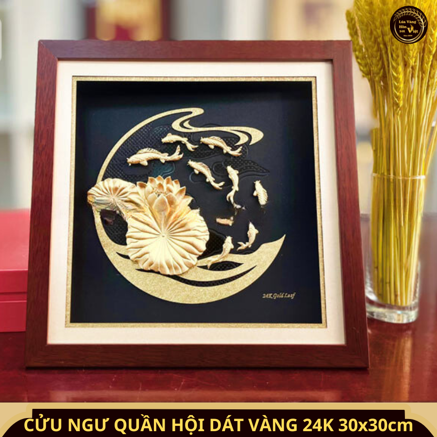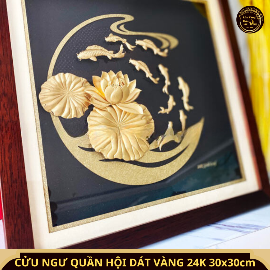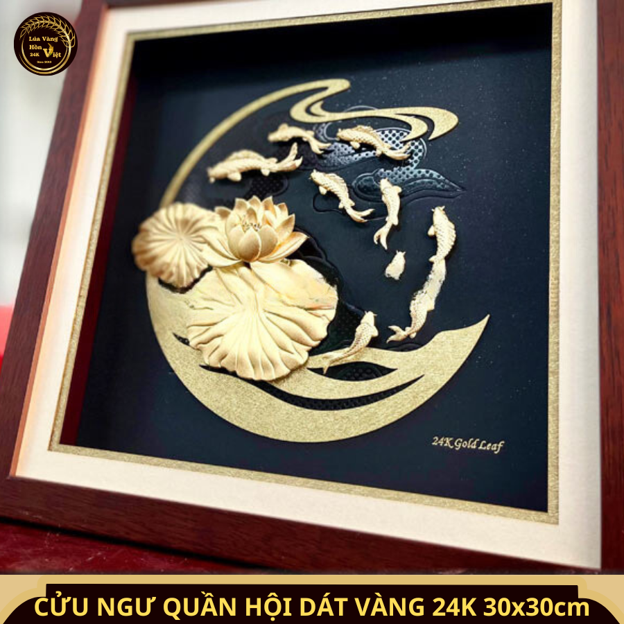 CỬU NGƯ QUẦN HỘI DÁT VÀNG 24K 30x30cm