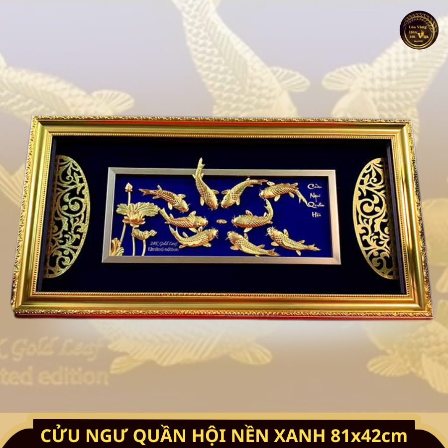 Sở hữu ngay Tranh Cửu Ngư Quần Hội Nền Xanh Dát Vàng 24K để mang đến sự thịnh vượng, may mắn và tài lộc cho không gian sống của bạn!