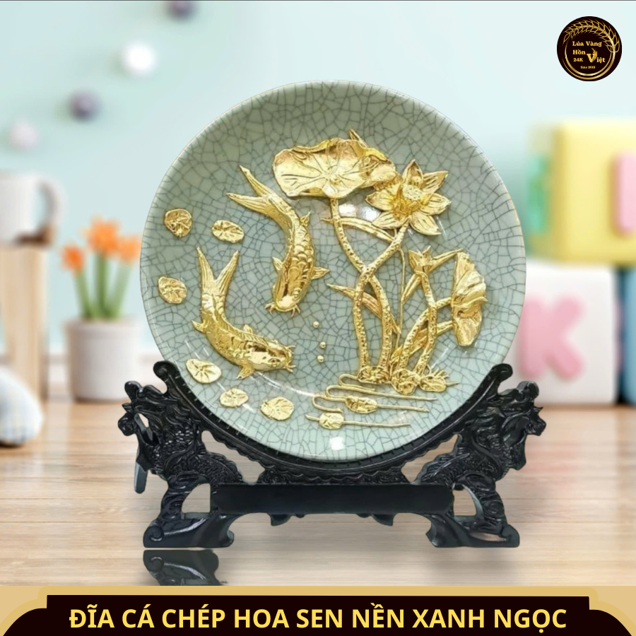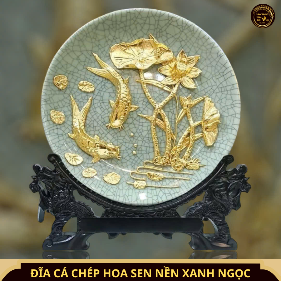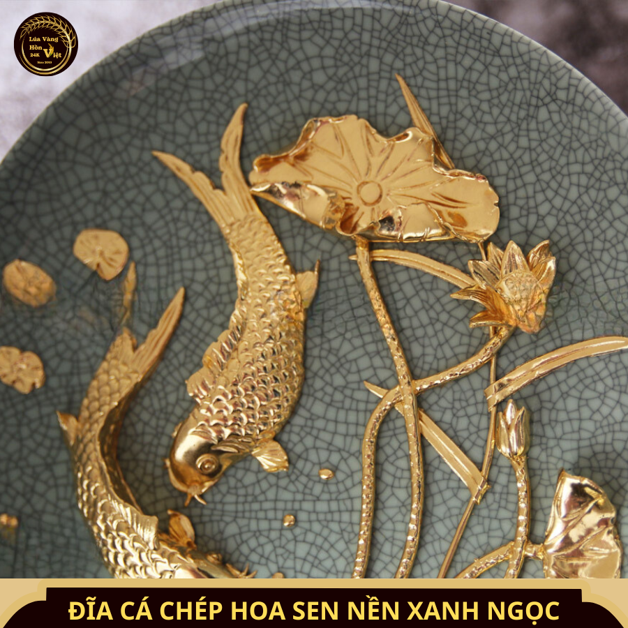 ĐĨA CÁ CHÉP HOA SEN MEN DẠN DÁT VÀNG 24K