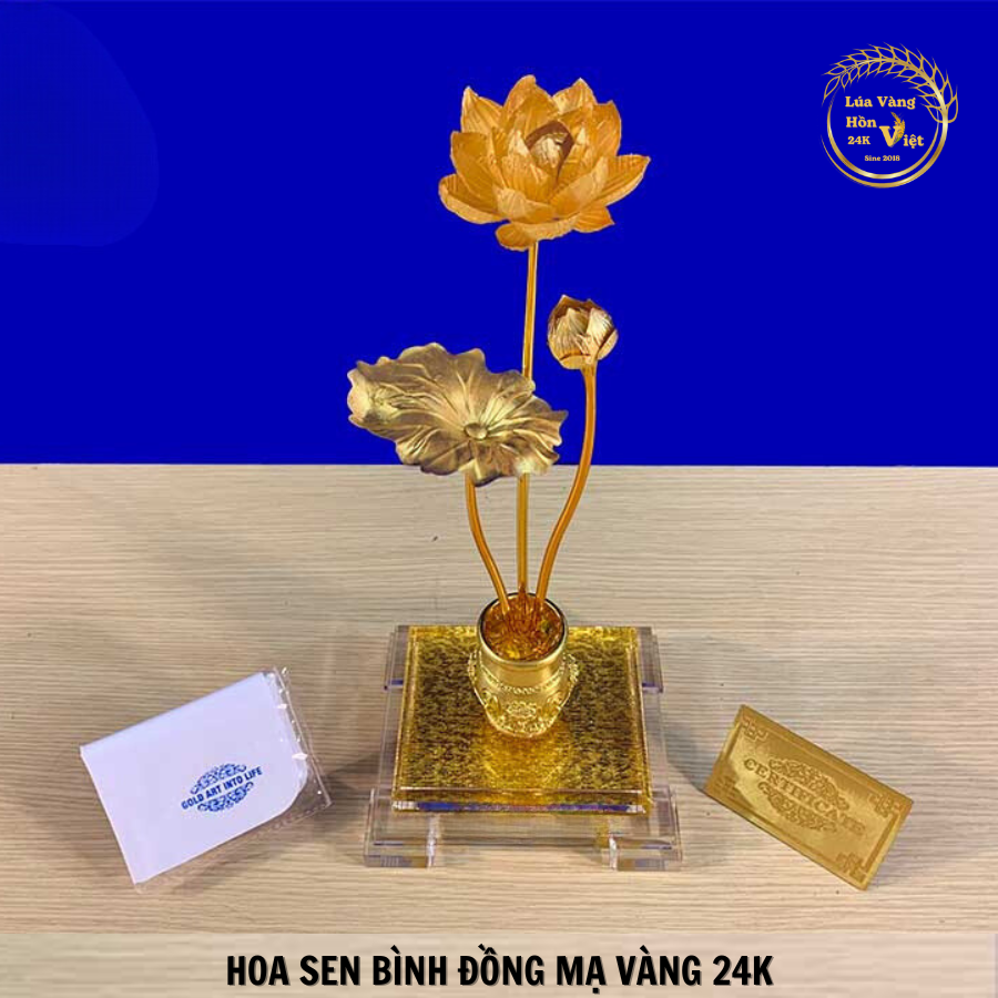 HOA SEN BÌNH ĐỒNG MẠ VÀNG 24K