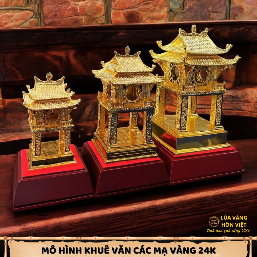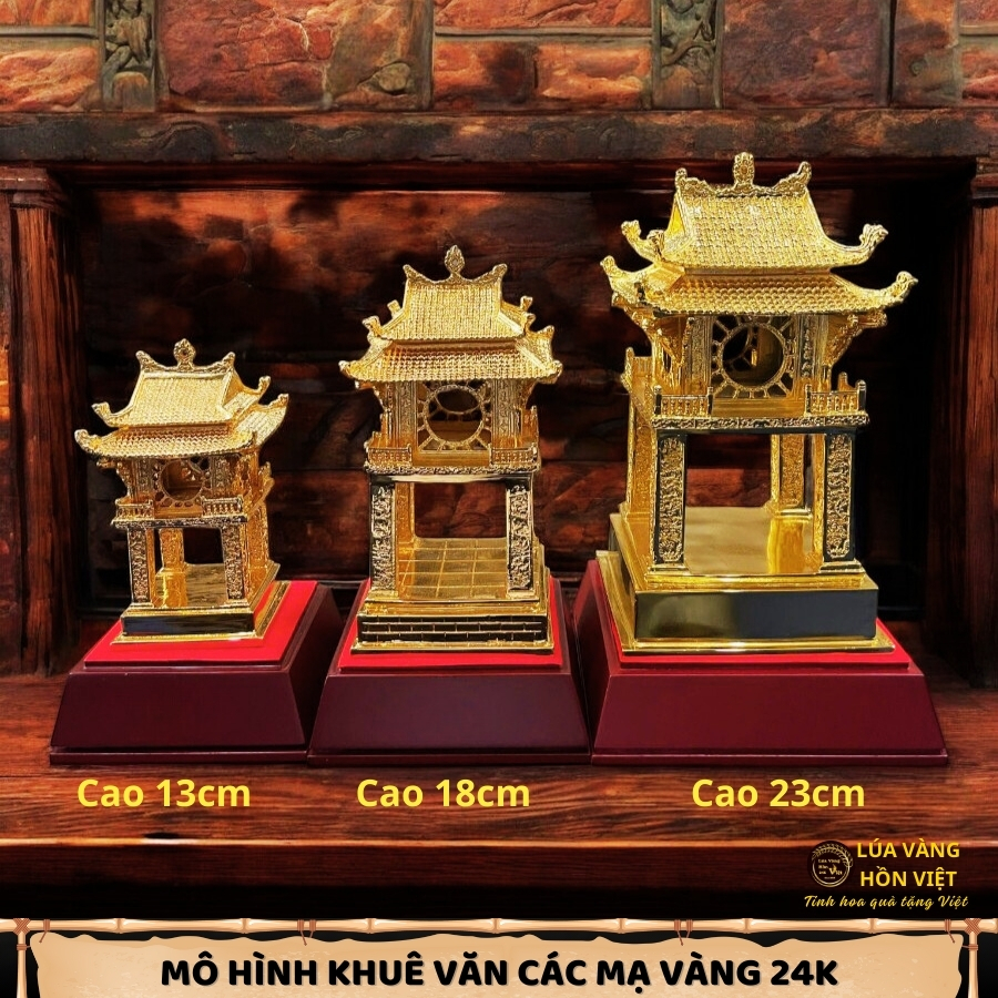 Mô hình Khuê Văn Các mạ vàng 24K là tác phẩm nghệ thuật tinh xảo, tái hiện vẻ đẹp uy nghi và biểu tượng văn hóa của tri thức Việt Nam. Với nhiều kích cỡ đa dạng, sản phẩm này không chỉ là vật phẩm phong thủy mà còn là món quà ý nghĩa, sang trọng, dành cho các dịp đặc biệt.