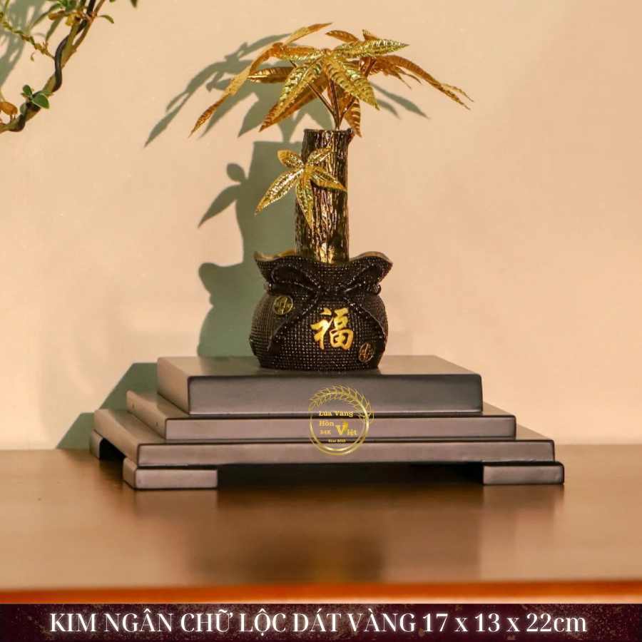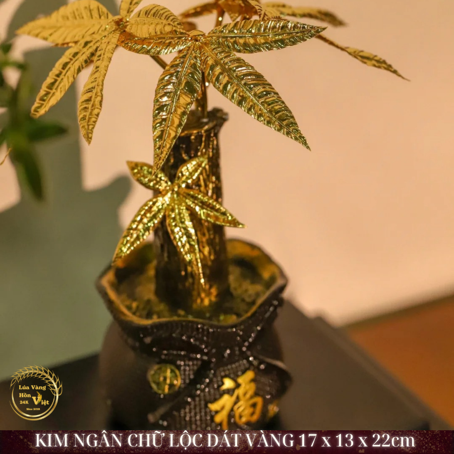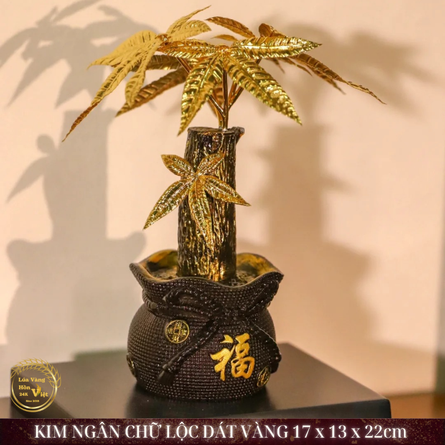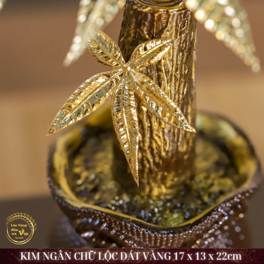KIM NGÂN CHỮ LỘC DÁT VÀNG 24K 17x13x22cm