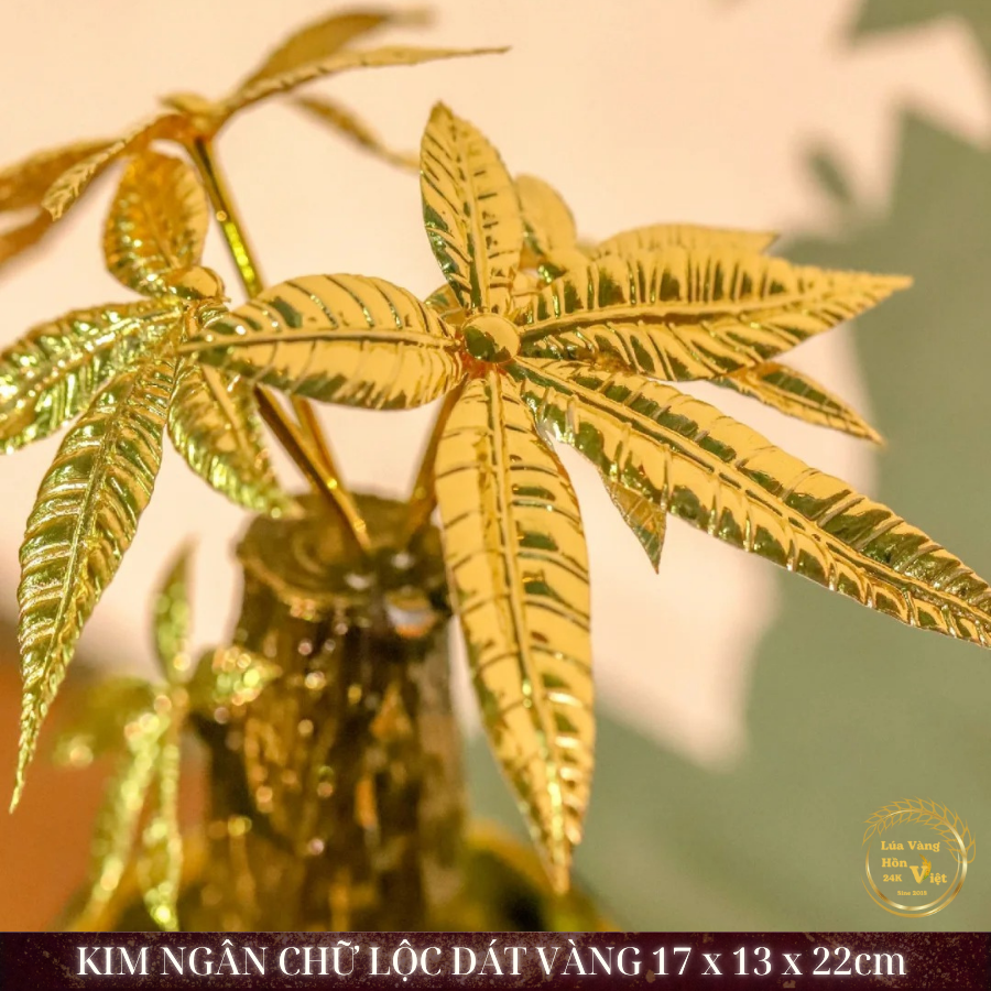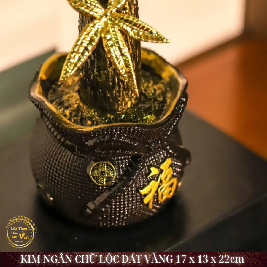 Hãy mang về cho mình Kim Ngân Chữ Lộc Dát Vàng 24K kích thước 17x13x22cm từ Lúa Vàng Hồn Việt để làm đẹp cho không gian sống của bạn và gửi gắm những lời chúc tốt đẹp đến những người bạn yêu thương!