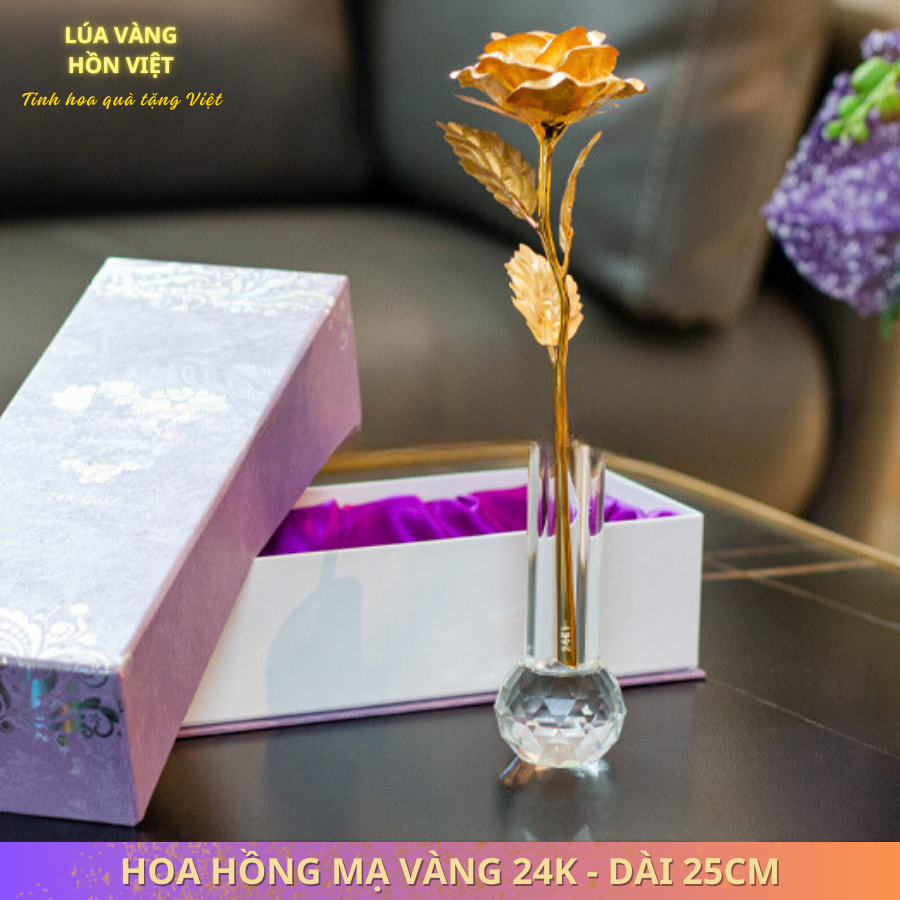 Bông hồng mạ vàng là mẫu quà tặng cao cấp được chế tác thủ công bởi thương hiệu Lúa Vàng Hồn Việt. Đây là món quà ý nghĩa dành tặng Vợ, người yêu, bạn gái, Sếp nữ, Đối tác nữ trong các ngày lễ, các dịp kỷ niệm hoặc làm quà sinh nhật… Chi tiết về mẫu quà tặng này, mời quý khách hàng tham khảo chi tiết qua bài viết dưới đây: