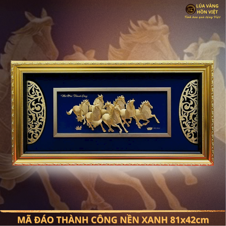 Đặt ngay Tranh Mã Đáo Thành Công Nền Xanh 81x42cm để mang lại sự thịnh vượng và may mắn cho không gian sống của bạn!