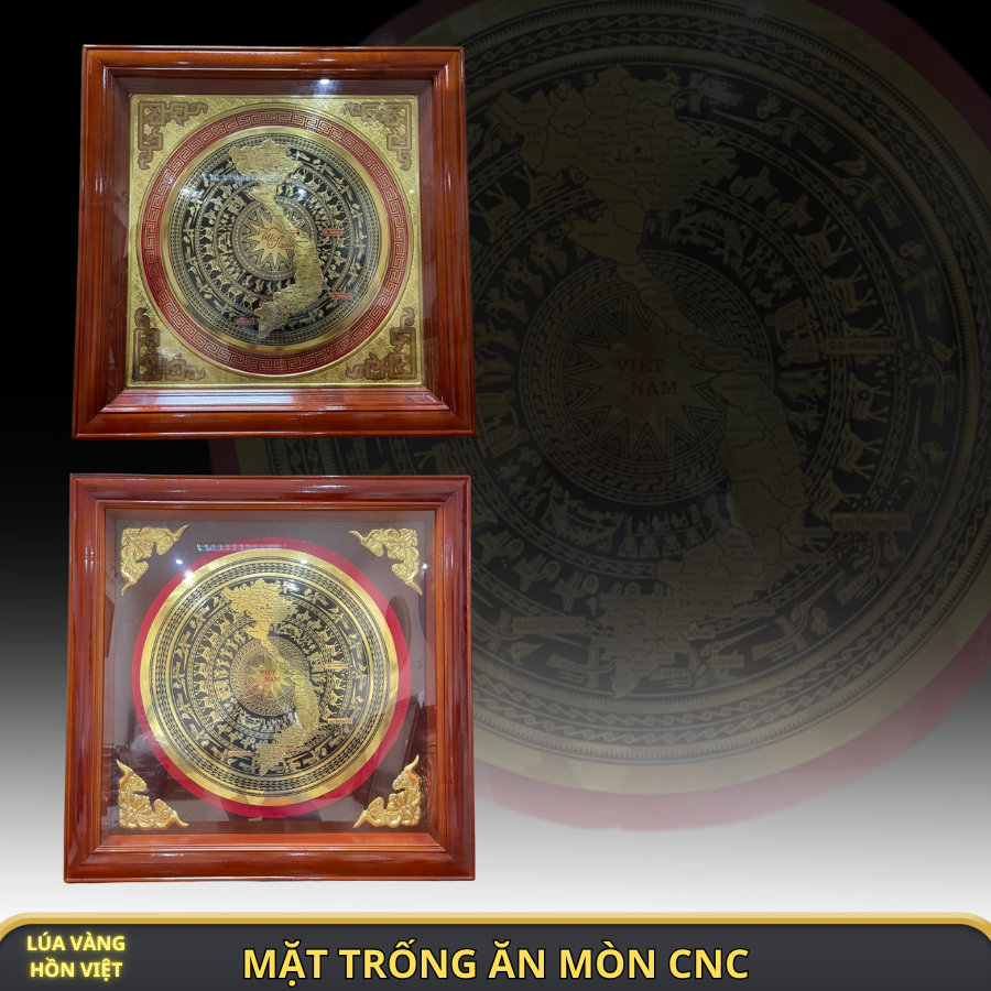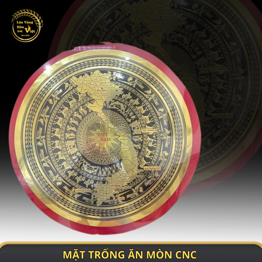 Tranh mặt trống ăn mòn CNC của Lúa Vàng Hồn Việt là bức tranh cao cấp, đẹp, ý nghĩa dùng để treo trong nhà, phòng làm việc, phòng họp cơ quan để tạo sự sang trọng, độc đáo, mới mẻ cho không gian. Đồng thời xua đuổi tà ma ngoại đạo, mang lại may mắn trong công danh, sự nghiệp.
