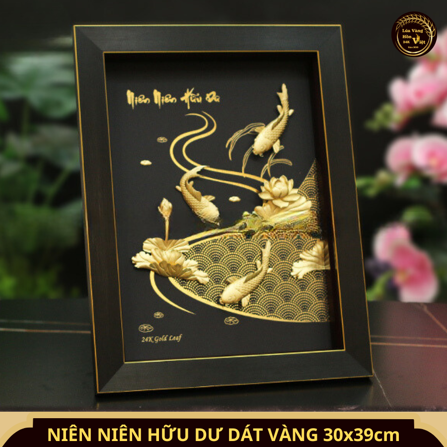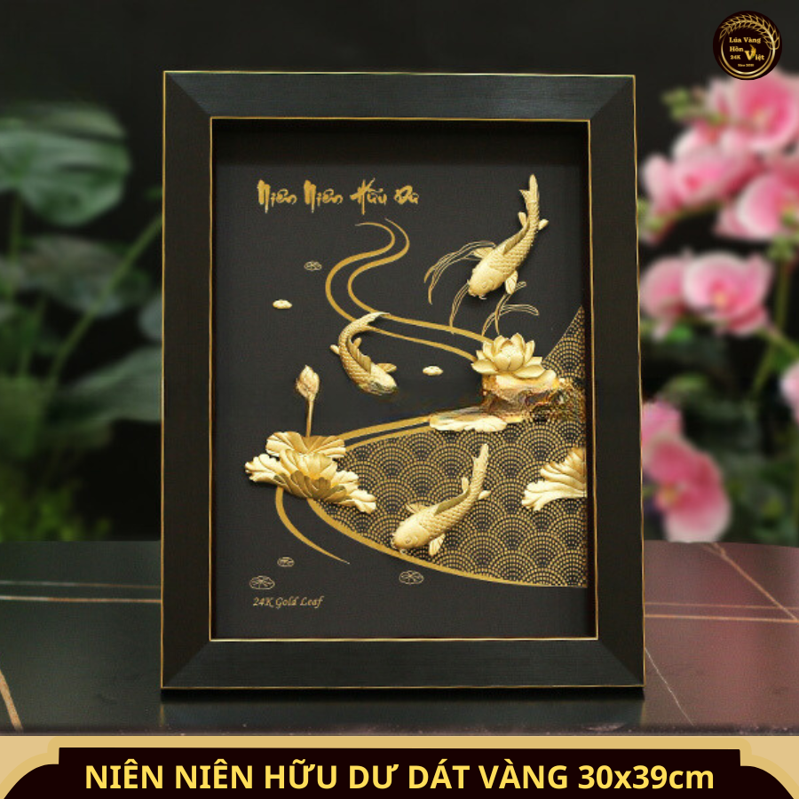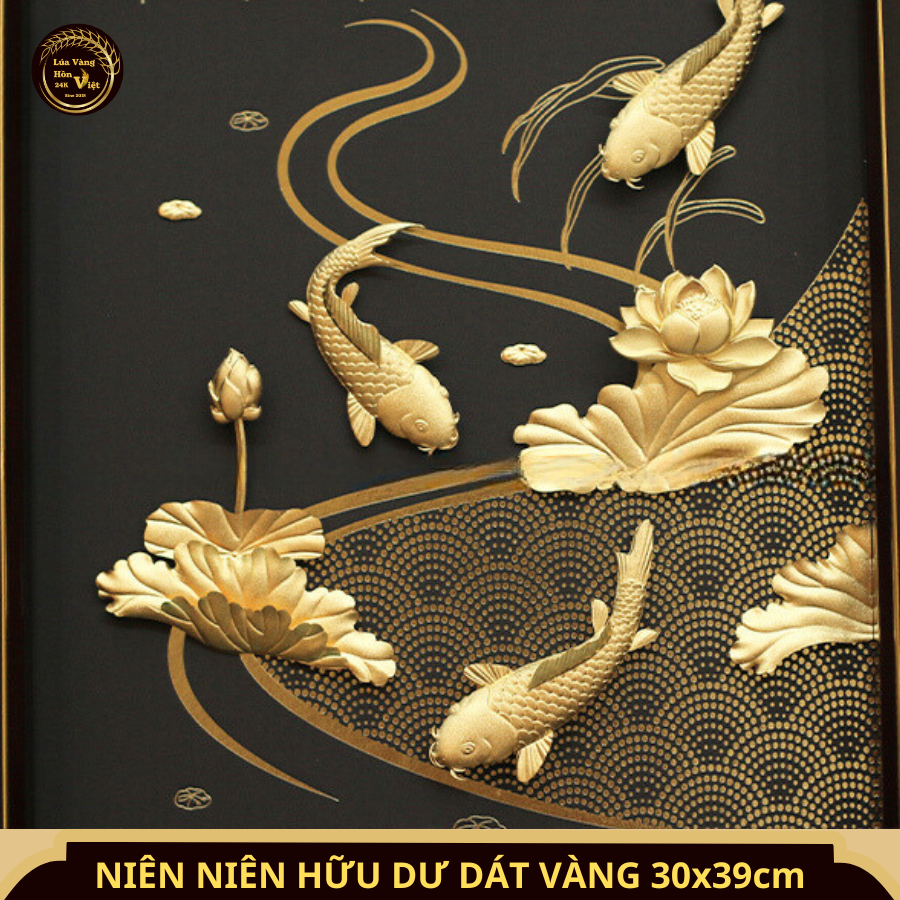 Sở hữu ngay Tranh Niên Niên Hữu Dư Dát Vàng 24K 30x39cm để mang đến sự thịnh vượng, tài lộc và hạnh phúc cho không gian sống của bạn!