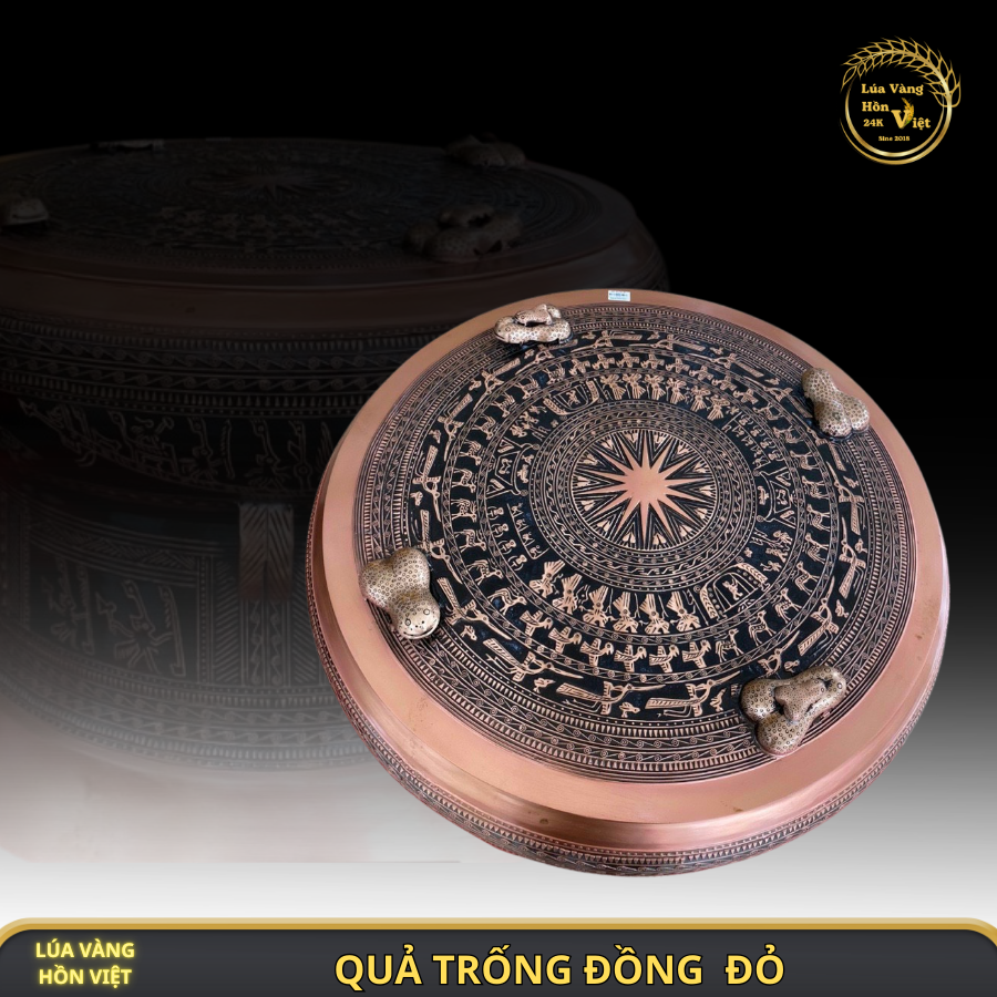 Quả trống đồng đỏ được chế tác từ các nghệ nhân có tay nghề cao nên các hoa văn họa tiết trên bề mặt quả trống và xung quanh được đúc rất tinh xảo và sắc nét, đúng chuẩn của dòng trống Đông Sơn, Thanh Hóa. Phương pháp đúc hoa văn chìm tạo vẻ đẹp độc đáo, cuốn hút, để lại ấn tượng mạnh mẽ. Đây là phương pháp đúc trống đồng đặc biệt, hiếm có làng nghề nào có thể thực hiện được.