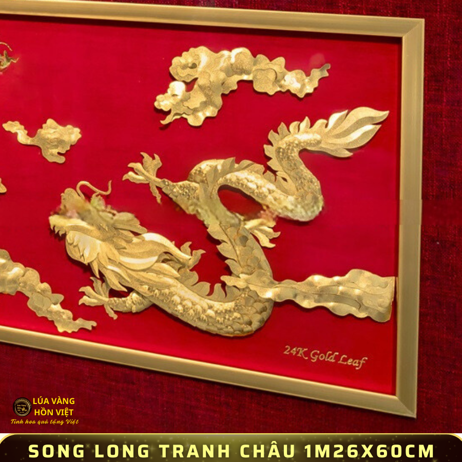 SONG LONG TRANH CHÂU DÁT VÀNG 24K 1m26x60cm
