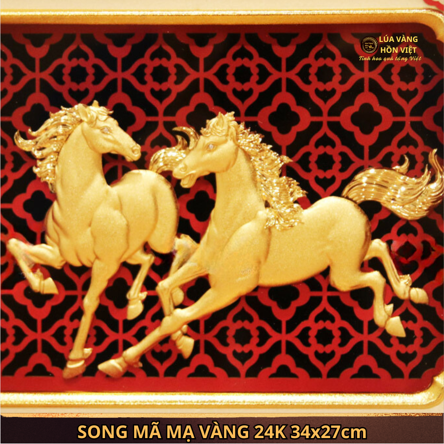 Tranh Song Mã Mạ Vàng 24K 34x27cm là tác phẩm nghệ thuật tinh xảo mang ý nghĩa phong thủy sâu sắc, tượng trưng cho sự mạnh mẽ, kiên trì và thành công. Sản phẩm được chế tác từ chất liệu cao cấp, mạ vàng 24K lấp lánh, tạo nên điểm nhấn sang trọng và thu hút.