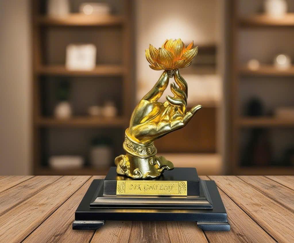 Tay Phật Cầm Hoa Sen Mạ Vàng 24K