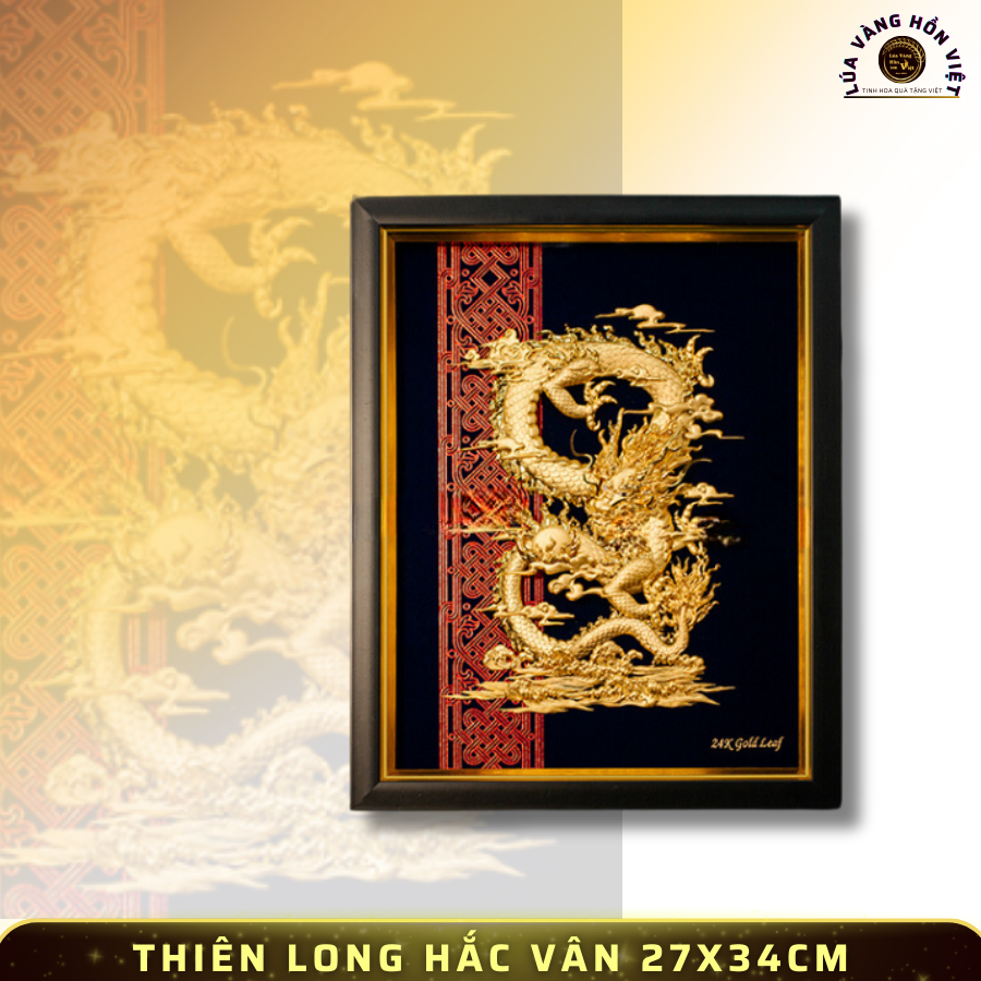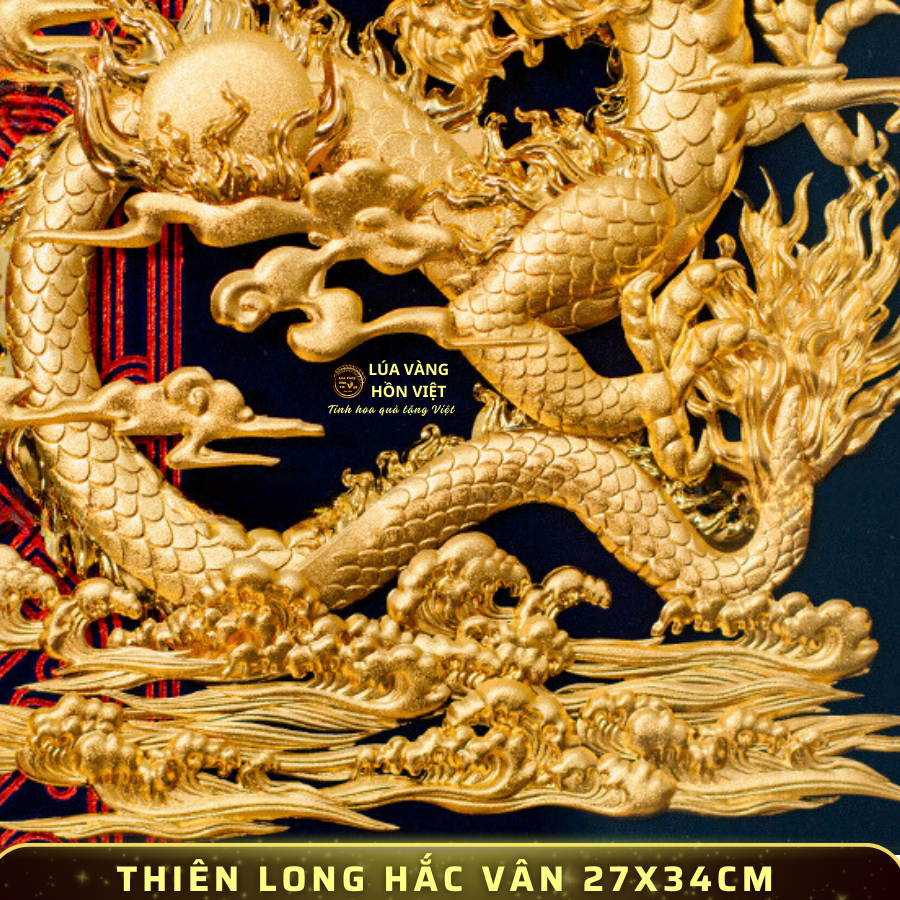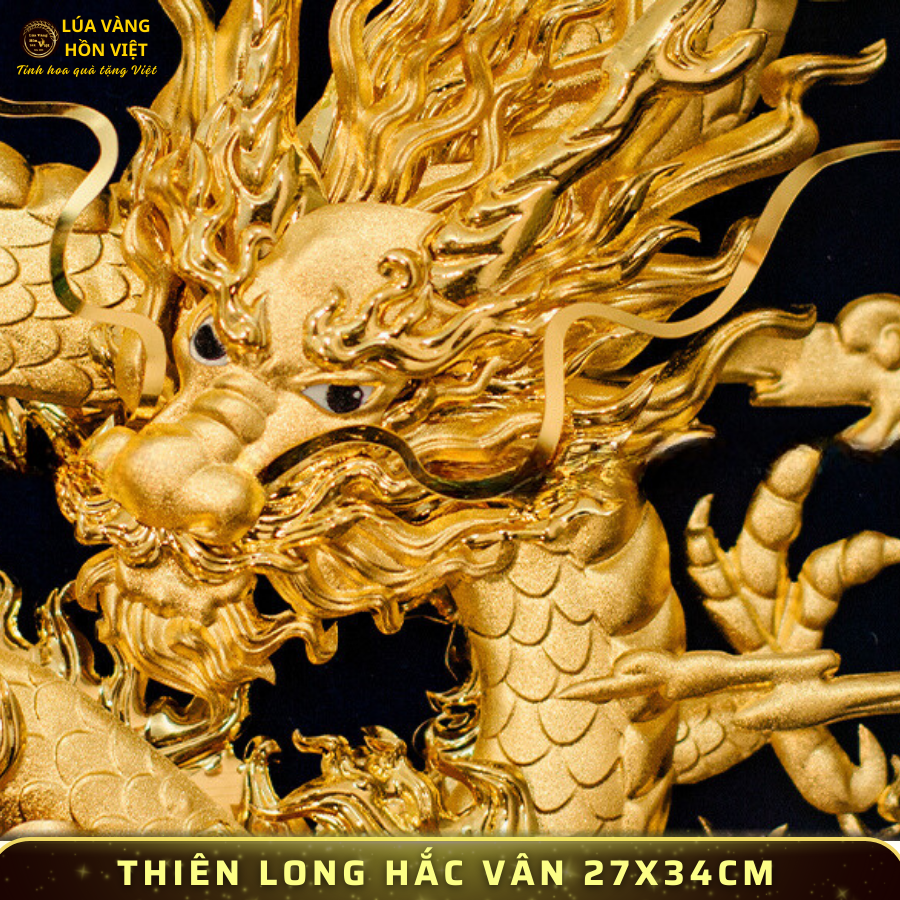 Tranh Thiên Long Hắc Vân Dát Vàng 24K Kích Thước 27x34cm là lựa chọn lý tưởng để mang đến không gian sống một nguồn năng lượng tích cực, đồng thời là món quà phong thủy cao cấp không thể thiếu trong những dịp quan trọng. Hãy sở hữu ngay để mang về quyền lực, may mắn và thịnh vượng cho gia đình và công việc của bạn!