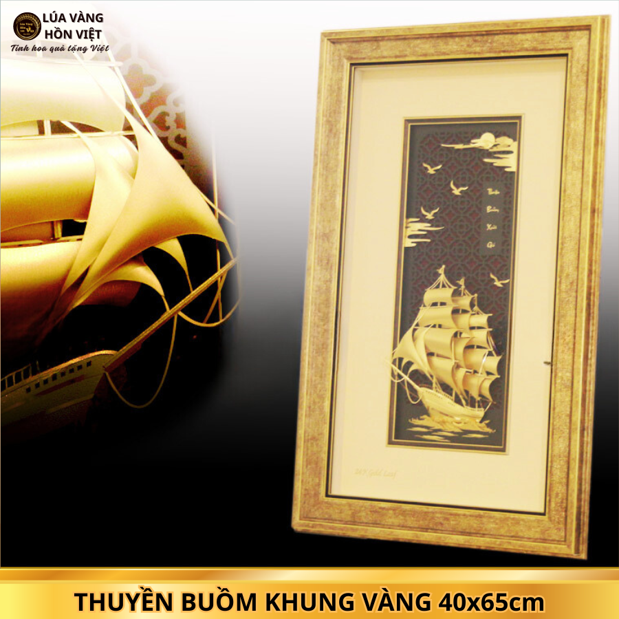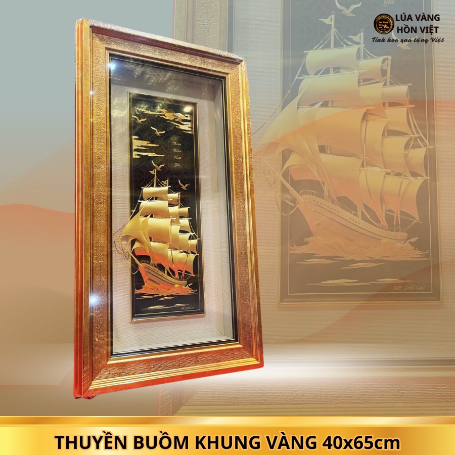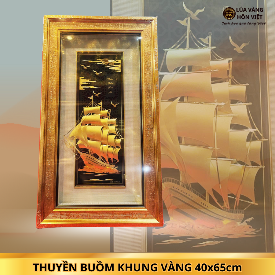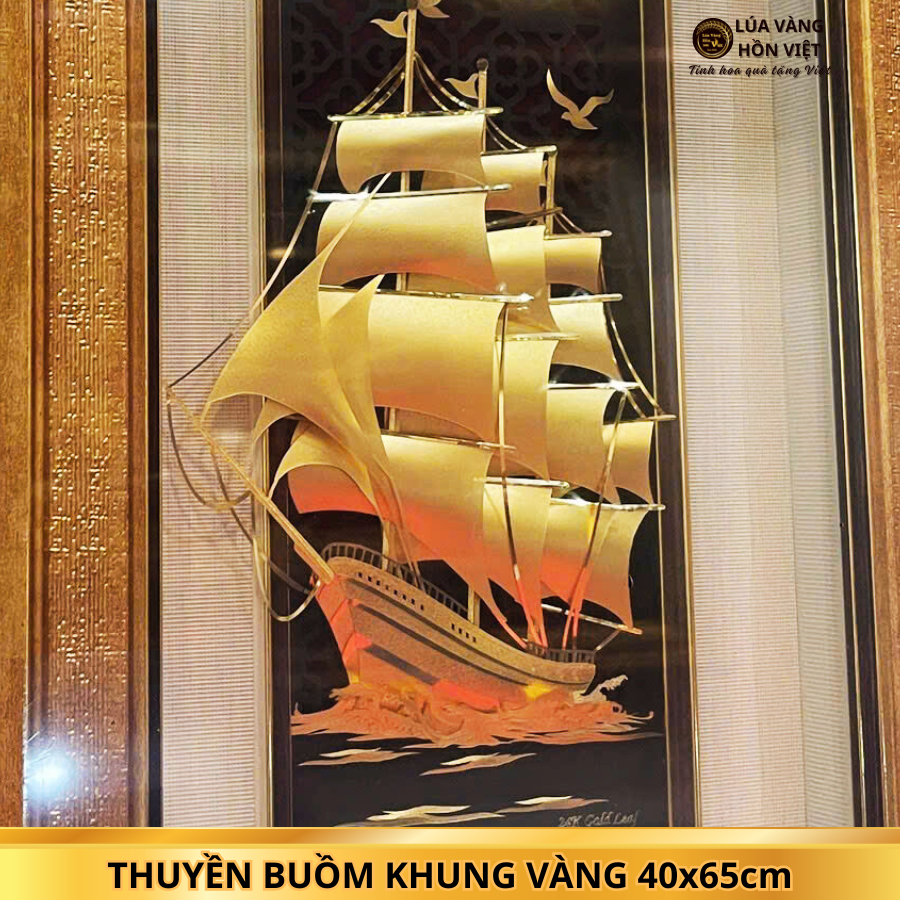 THUYỀN BUỒM KHUNG VÀNG 40x65cm