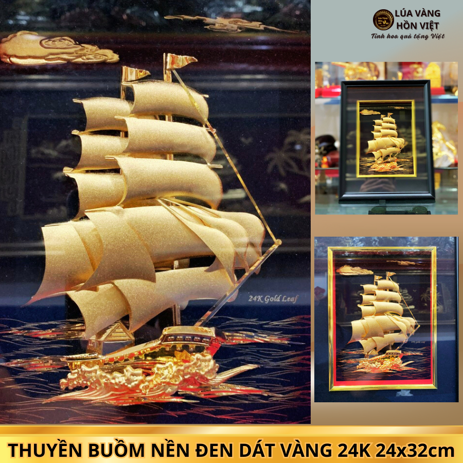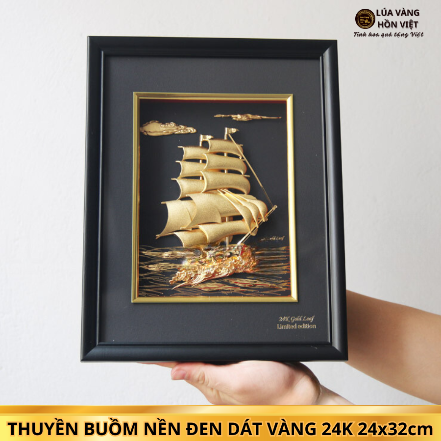 THUYỀN BUỒM NỀN ĐEN DÁT VÀNG 24K 24x32cm
