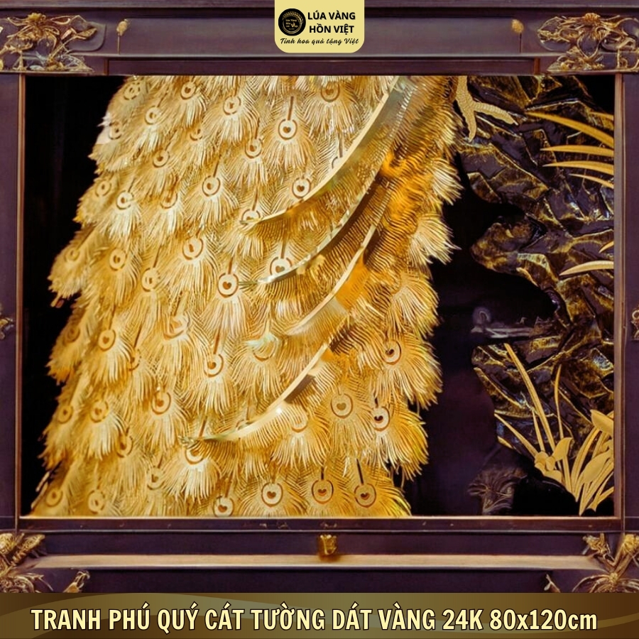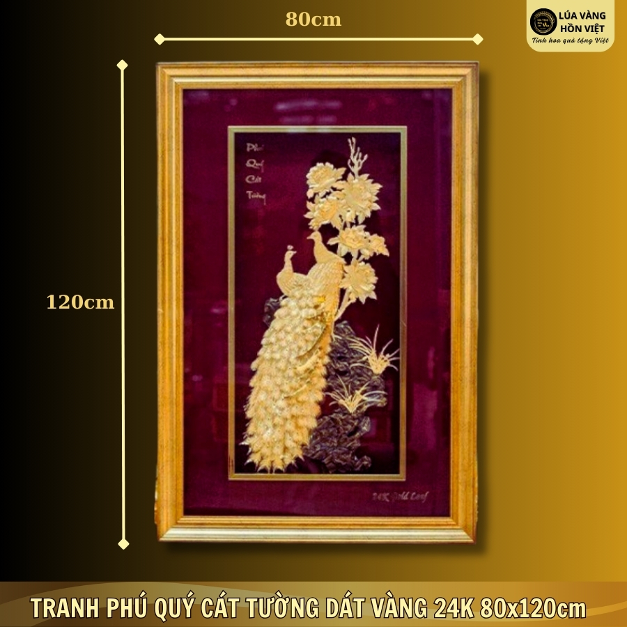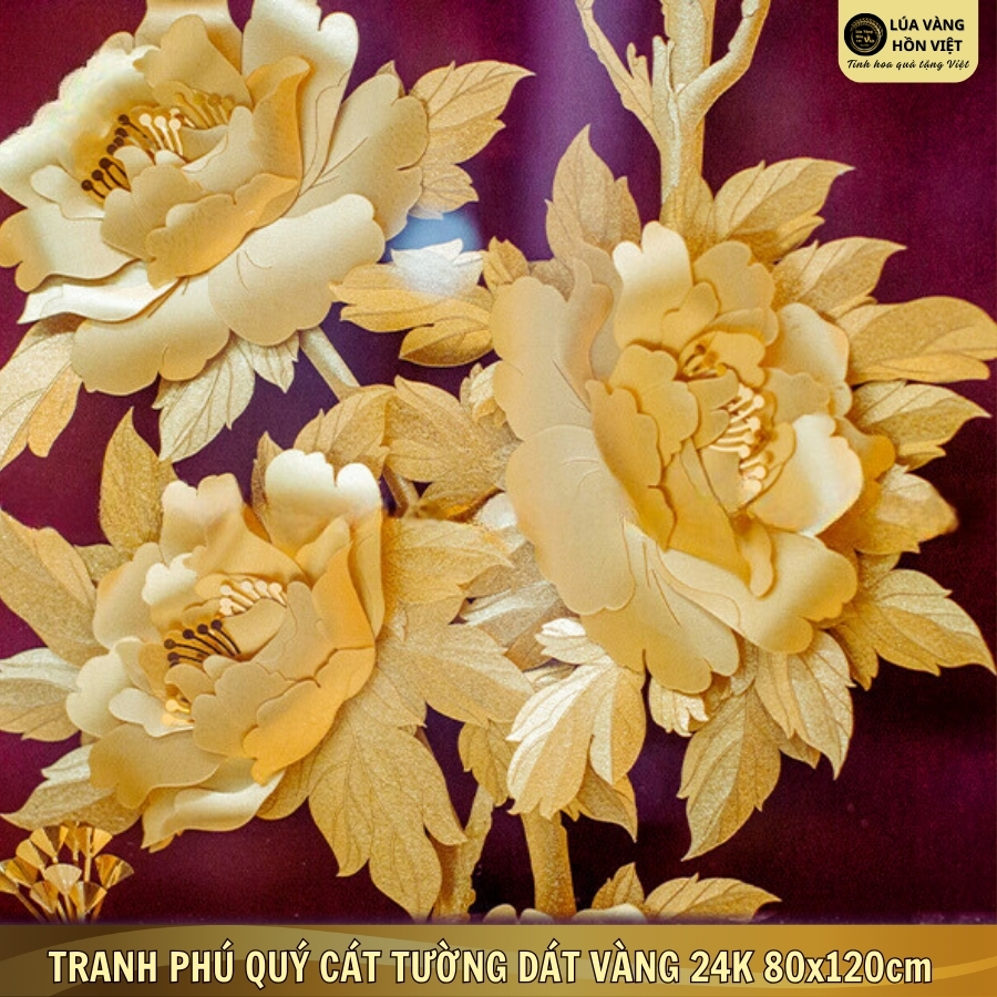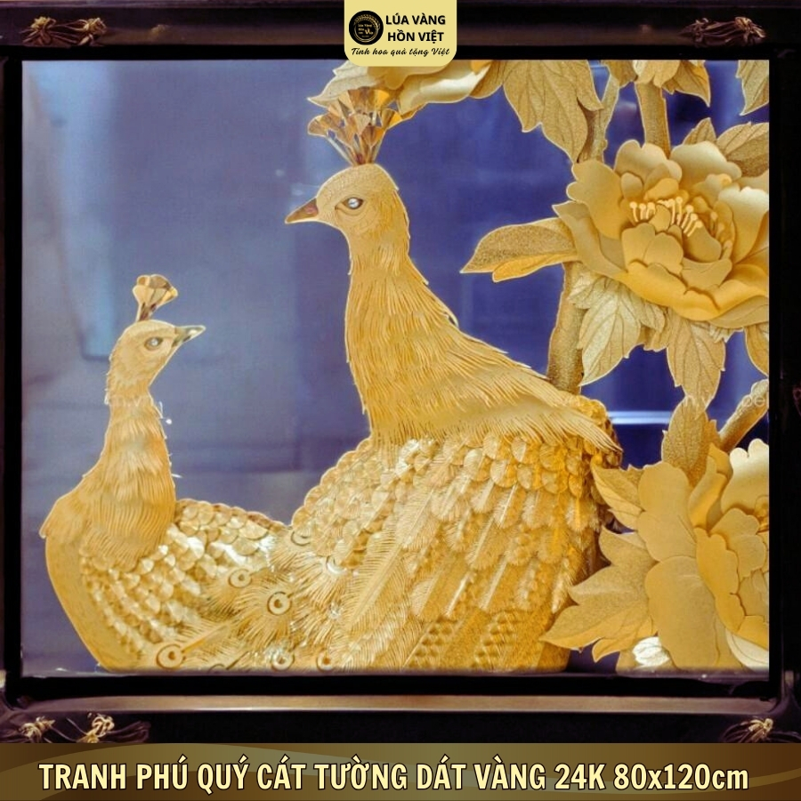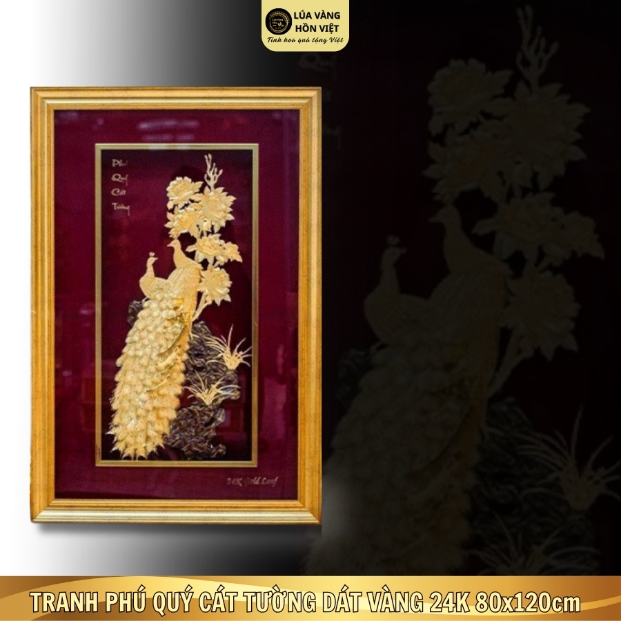 TRANH PHÚ QUÝ CÁT TƯỜNG DÁT VÀNG 24K 80x120cm