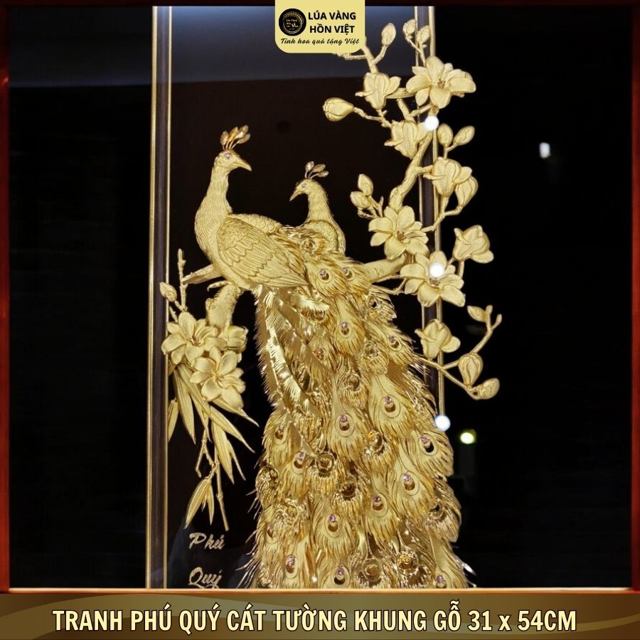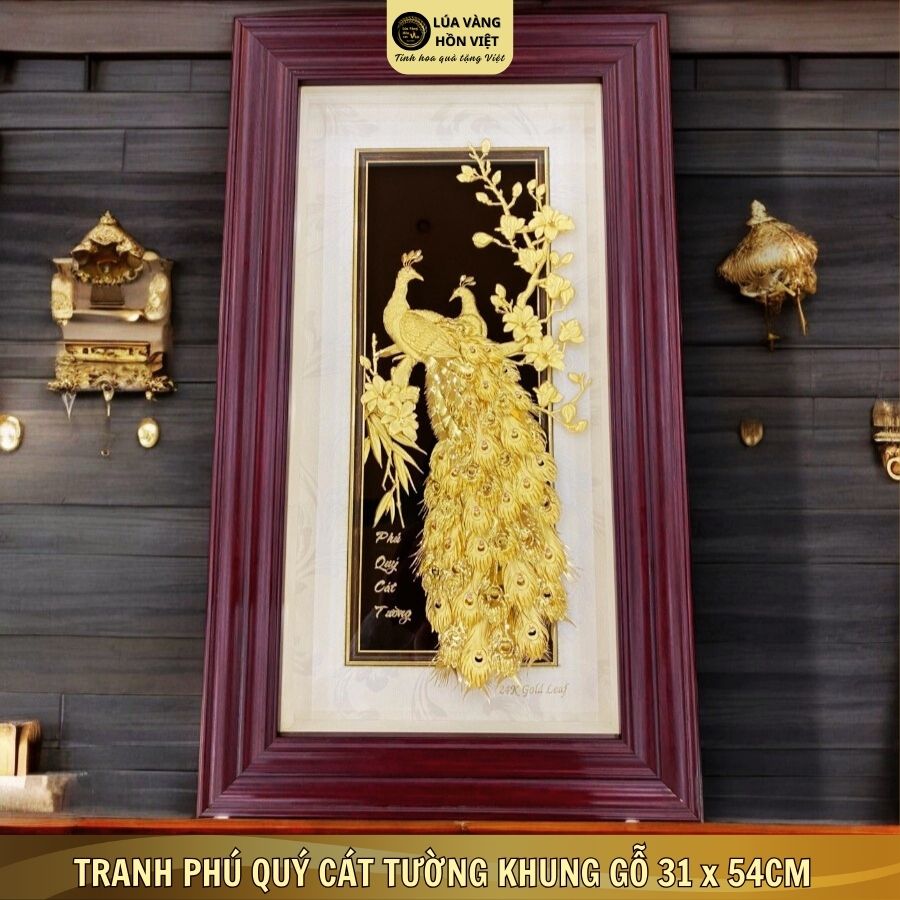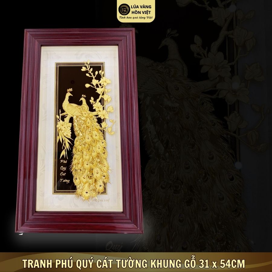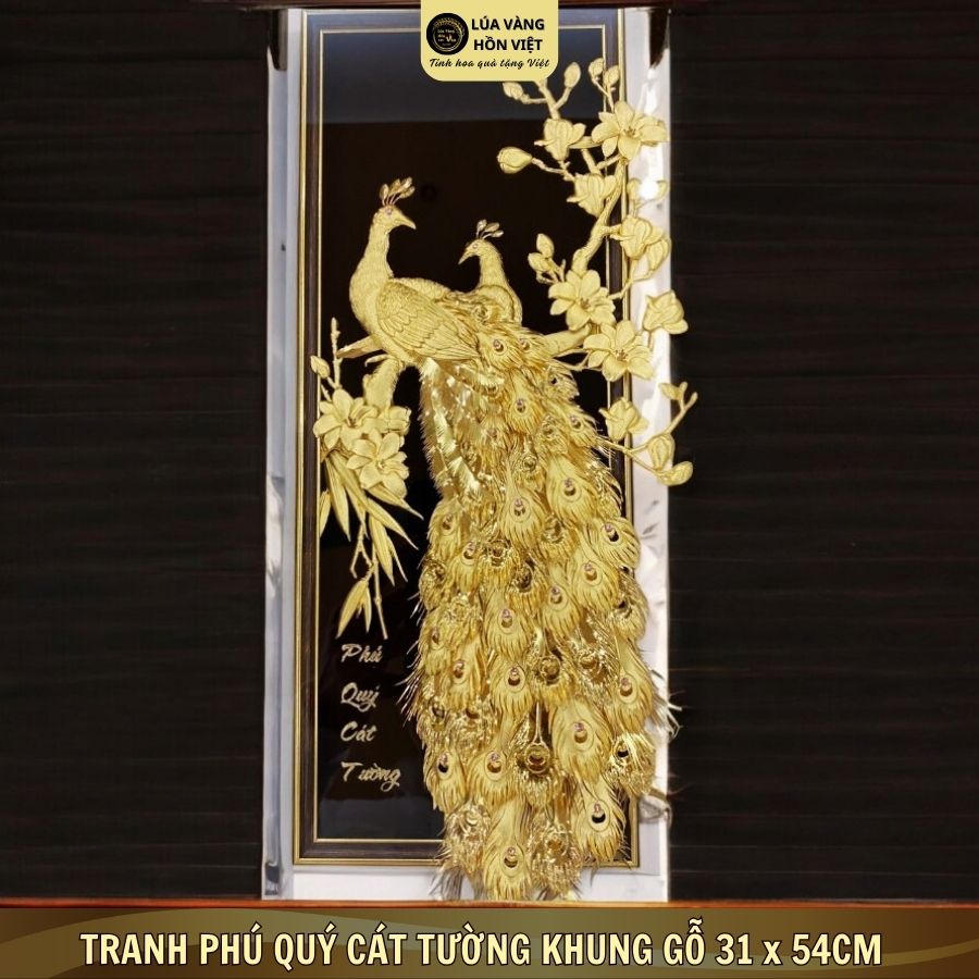 Tranh Chim Công Phú Quý Cát Tường khung gỗ 31x54cm từ thương hiệu Lúa Vàng Hồn Việt là tác phẩm nghệ thuật mang đậm ý nghĩa phong thủy. Với hình ảnh chim công kiêu sa, rực rỡ trên nền họa tiết sang trọng, bức tranh không chỉ là món đồ trang trí mà còn là biểu tượng của phú quý, cát tường và may mắn .