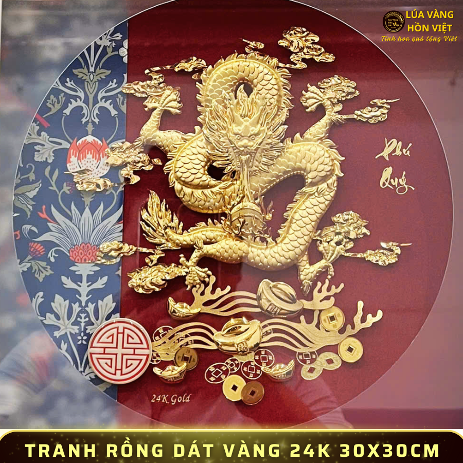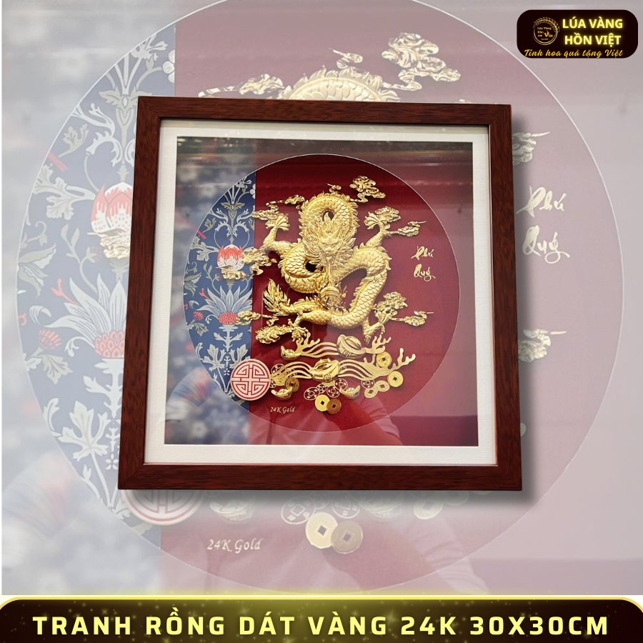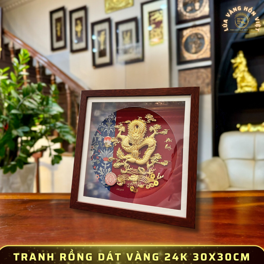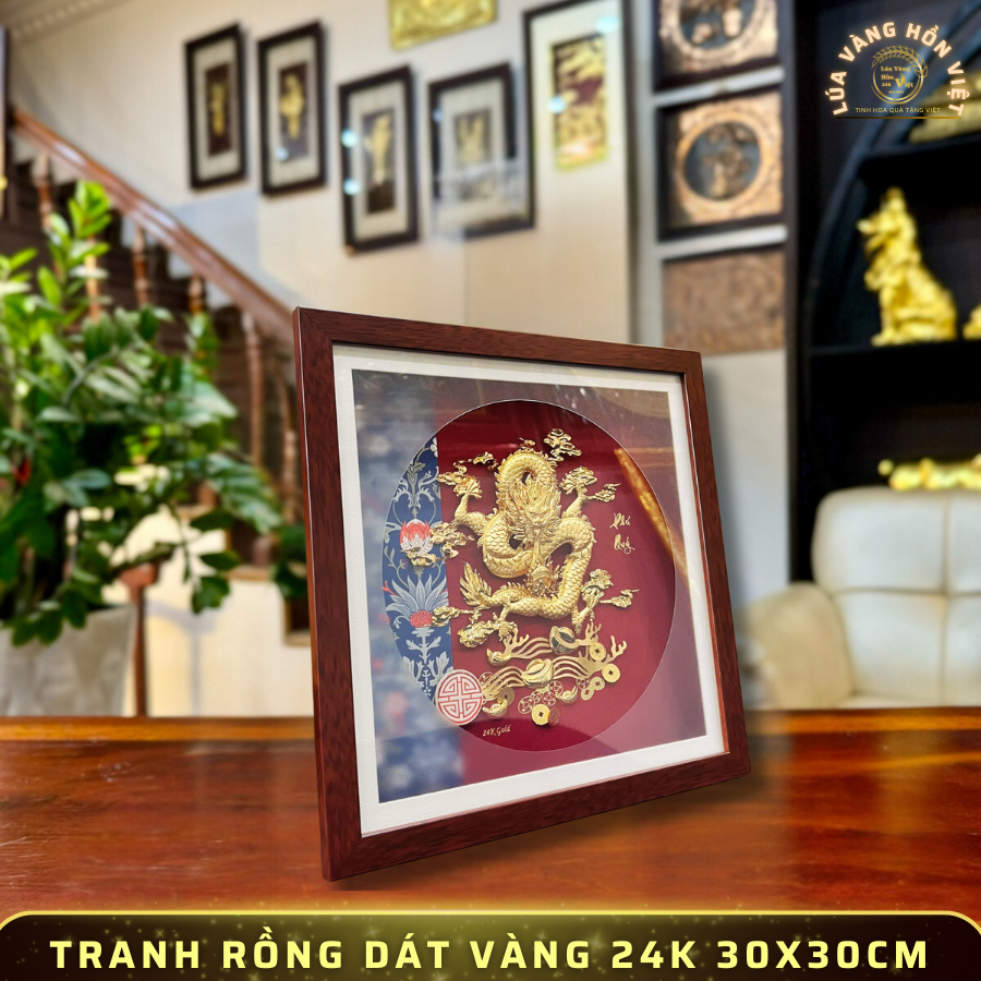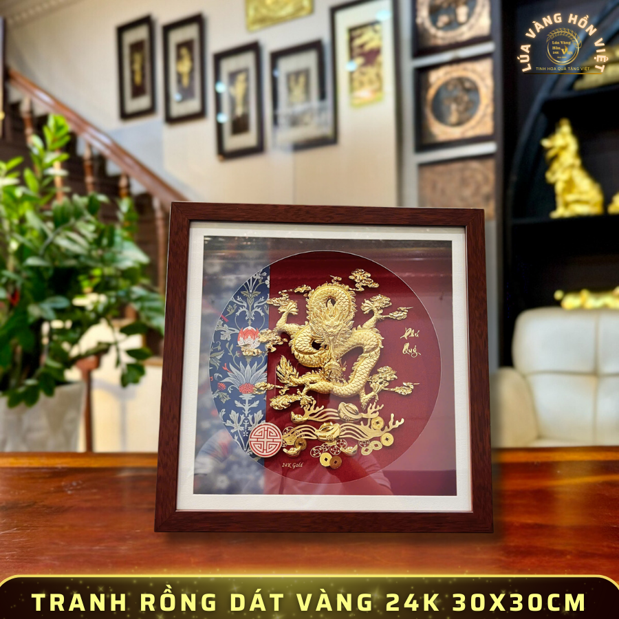 TRANH RỒNG DÁT VÀNG 24K 30x30cm