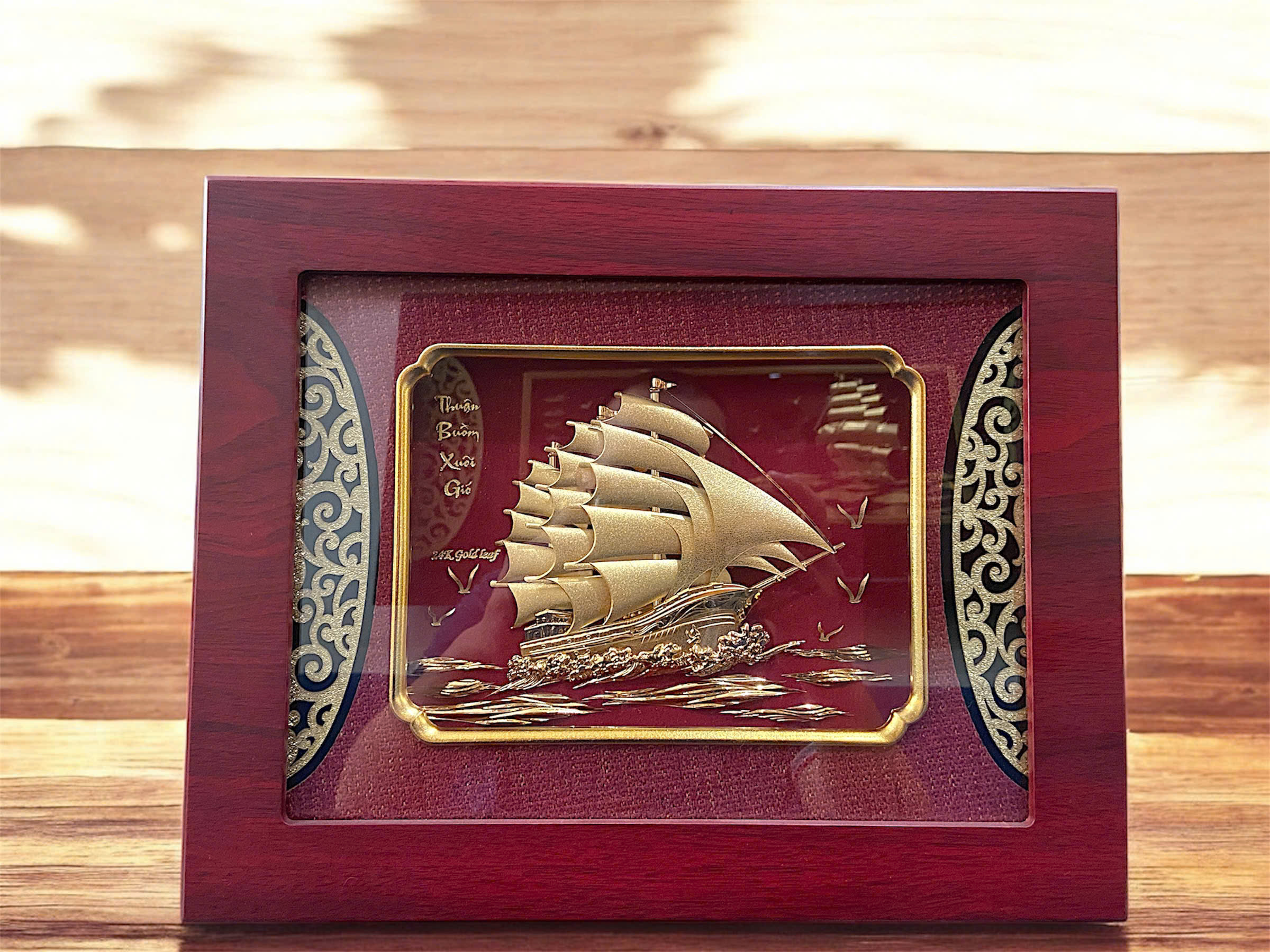 Tranh thuyền thuận buồm xuôi gió 34 cm x 27 cm mạ vàng 24k