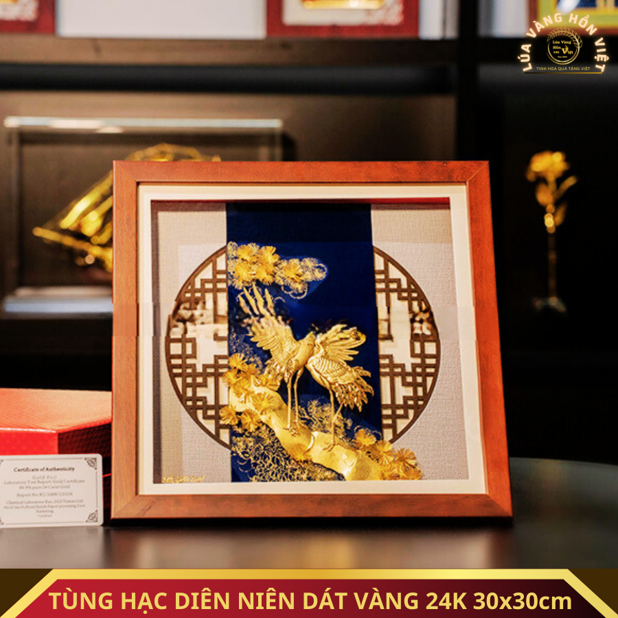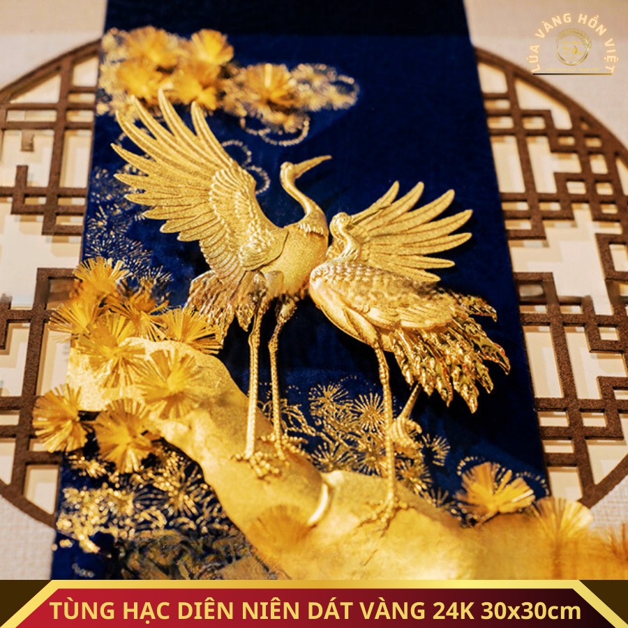 TÙNG HẠC DIÊN NIÊN DÁT VÀNG 24K 30x30cm