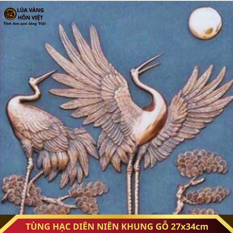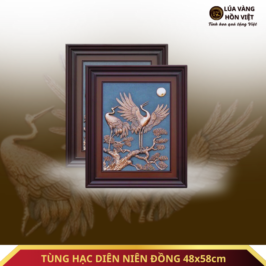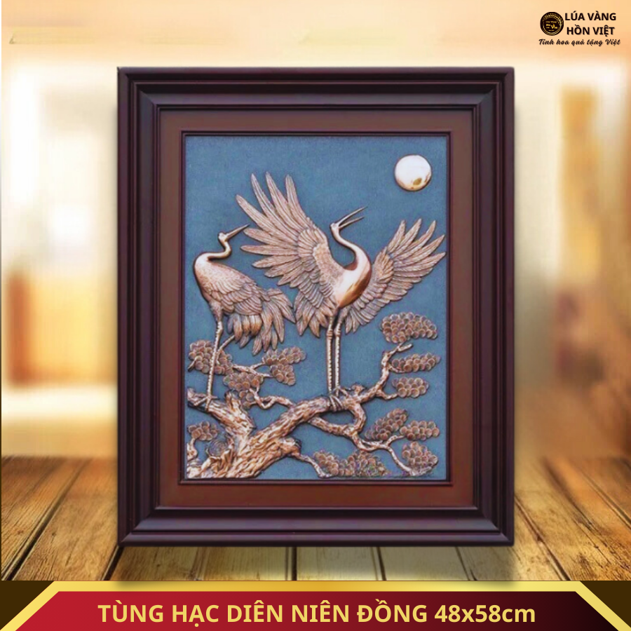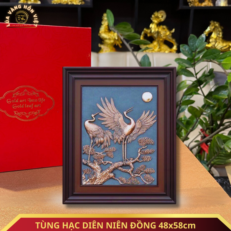 TÙNG HẠC DIÊN NIÊN ĐỒNG MẠ VÀNG 24K 48x58cm
