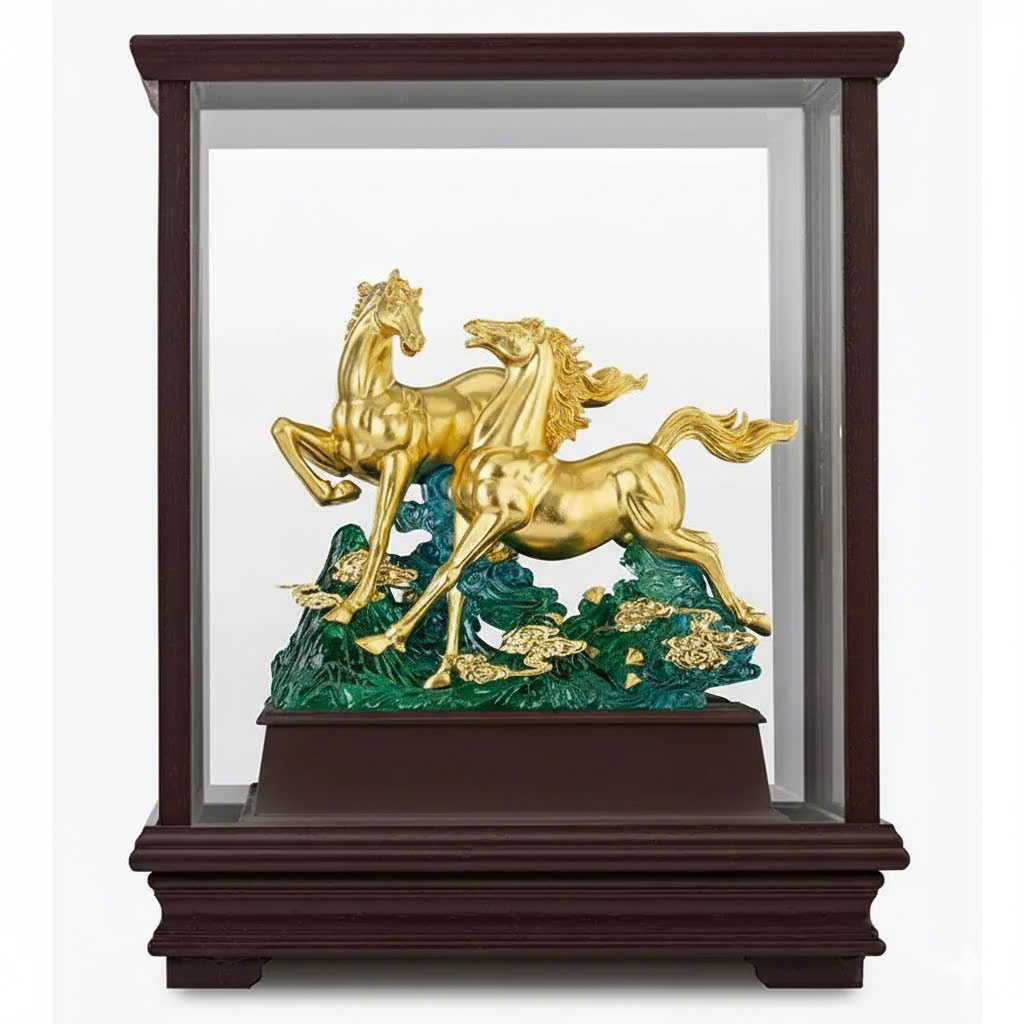 Tượng Ngựa Song Mã Dát Vàng 9999 KT 36x28x17cm – Quà Tặng Phong Thủy Cao Cấp