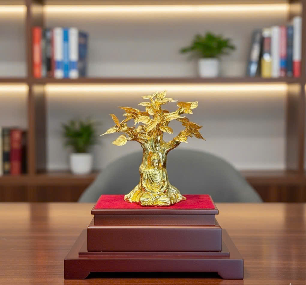 Tượng Phật Ngồi Dưới Cây Bồ Đề mạ Vàng 24K - Quà Tặng Phong Thuỷ Để Bàn Cao Cấp