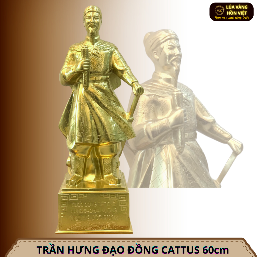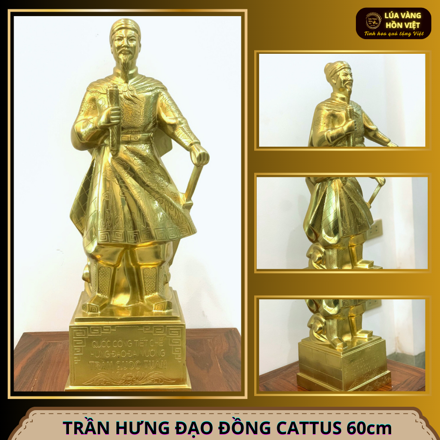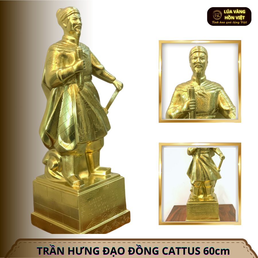 Tượng Trần Hưng Đạo Đồng Cattus cao 60cm là sản phẩm chế tác từ đồng Cattus chất lượng cao, được chạm khắc tinh xảo và mang phong cách mạnh mẽ, uy nghiêm, tái hiện hình ảnh vị anh hùng dân tộc Trần Hưng Đạo đầy hào khí. Đây là tác phẩm nghệ thuật cao cấp, lý tưởng để trang trí trong không gian gia đình, văn phòng, hoặc làm quà biếu trang trọng.
