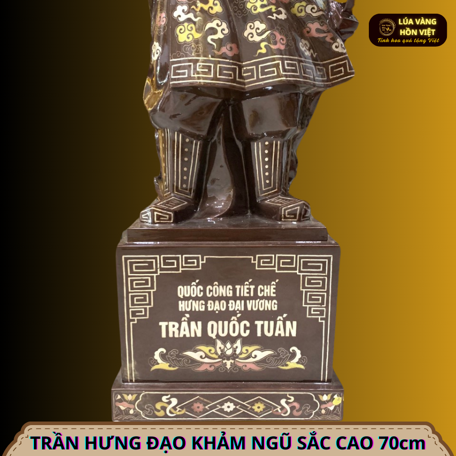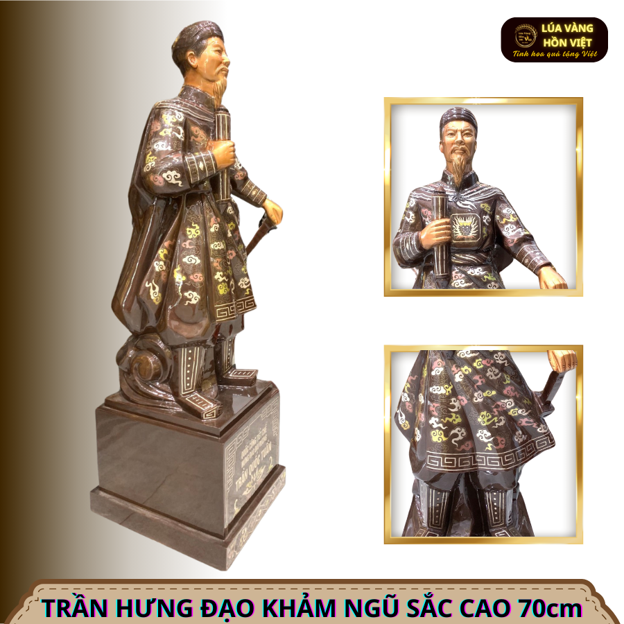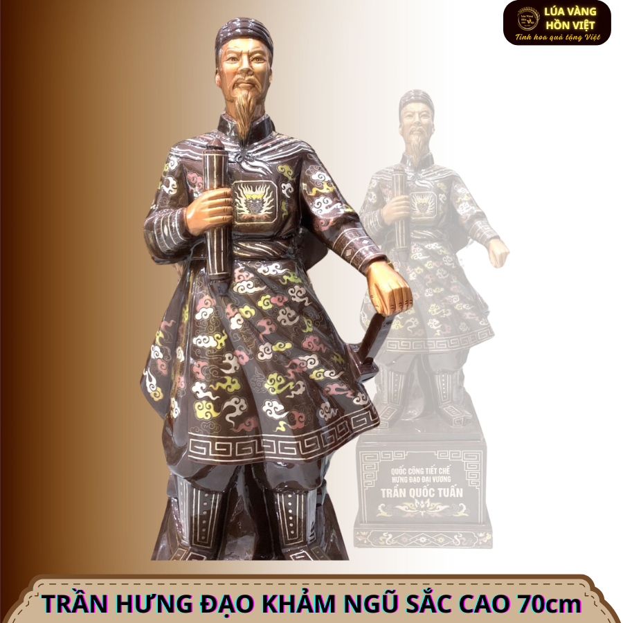 Tượng Trần Hưng Đạo Khảm Ngũ Sắc Cao 70cm không chỉ là một tác phẩm nghệ thuật đẳng cấp mà còn là vật phẩm phong thủy mang đến may mắn và bình an cho gia chủ. Hãy liên hệ ngay để sở hữu kiệt tác phong thủy độc đáo này!